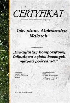lek. dent. Aleksandra Makuch - Kornacka wyróżnia się wśród innych lekarzy tym, iż posiada duże doświadczenie, fenomenalnym fach i pewną ręką.