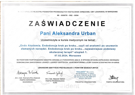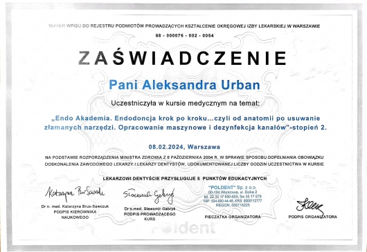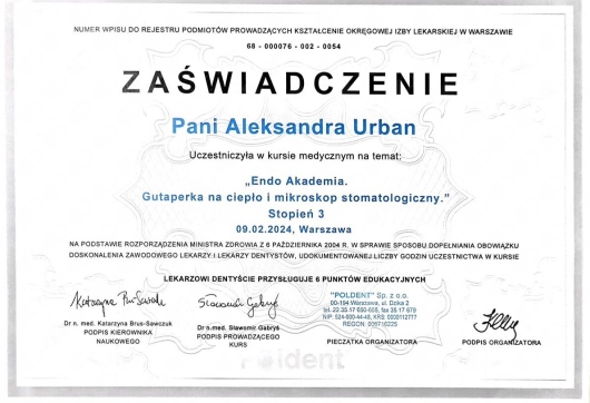Jaki jest zakres porad oferowanych przez Aleksandra Małyszko?Aleksandra Małyszko to stomatolog. Na podstawie swojego doświadczenia i wykształcenia Aleksandra Małyszko oferuje usługi takie jak: Endodoncja mikroskopowa, Stomatologia zachowawcza, leczenie protetyczne, higienizacja + wybielanie, badania stomatologiczne, badanie RTG, stomatologia estetyczna, konsultacja protetyczna, Wybielanie zębów, diagnostyka RTG/CBCT.