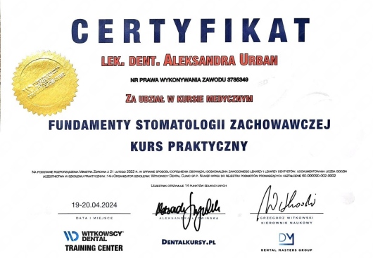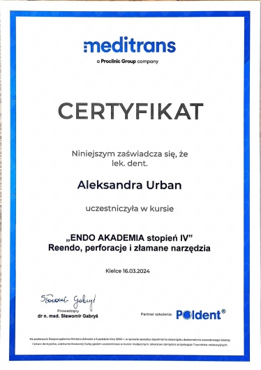 Zajmuję się stomatologią zachowawczą, estetycznymi odbudowami w odcinku przednim i bocznym, endodoncją (leczenie kanałowe) i protetyką. Wykonuję higienizacje i wybielanie. W trakcie zabiegów korzystam z lup, mikroskopu i koferdamu. Przyjmuję także Najmłodszych Pacjentów. Przeprowadzam również leczenia w sedacji podtlenkiem azotu oraz w znieczuleniu ogólnym. W swojej pracy cenię sobie indywidualne podejście do każdego Pacjenta. Stale podnoszę swoje kwalifikacje biorąc udział w szkoleniach oraz wprowadzając do codziennej pracy najnowsze techniki i materiały. Staram się, żeby zabiegi były bezbolesne, zrozumiałe i przeprowadzane w przyjaznej atmosferze :) Przyjmuję Pacjentów w języku polskim oraz angielskim.