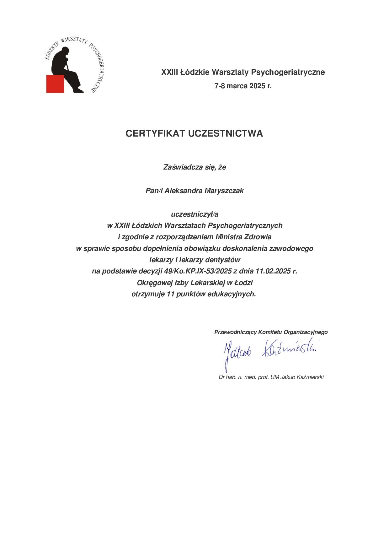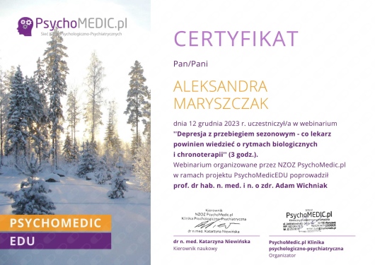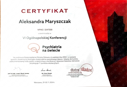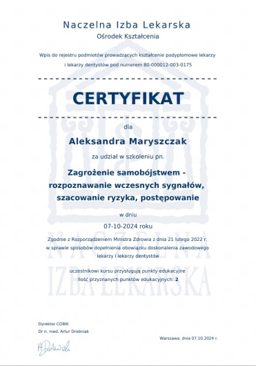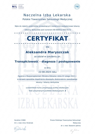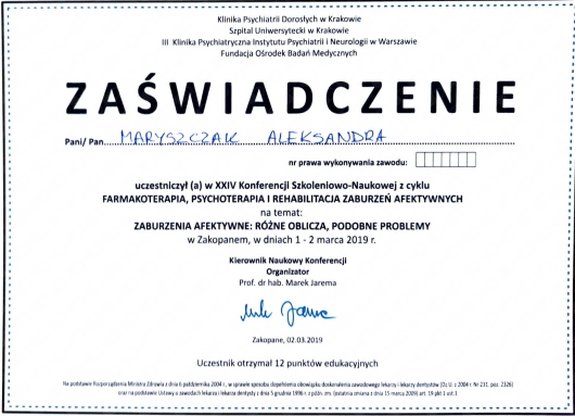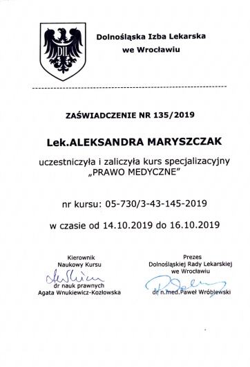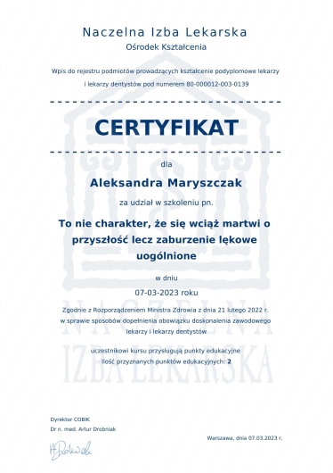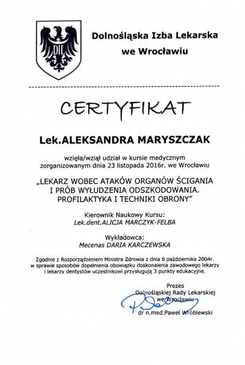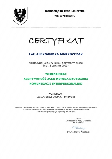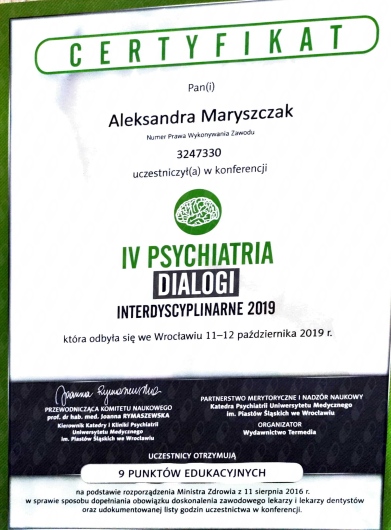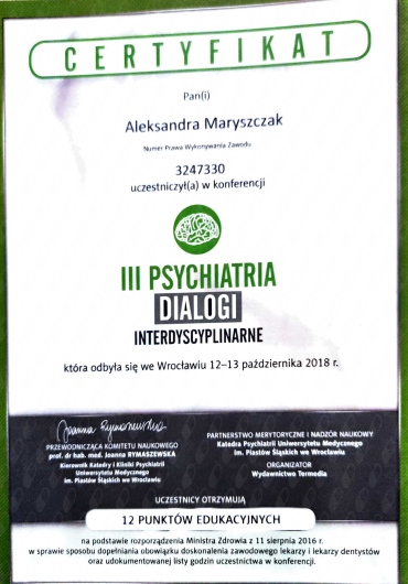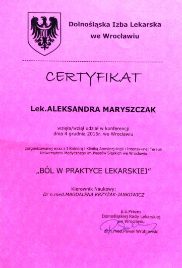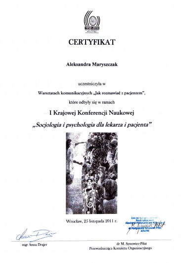 Systematycznie podnoszę swoje kwalifikację i aktualizuję wiedzę uczestnicząc w kursach, kongresach i szkoleniach.
