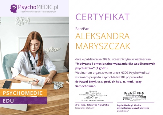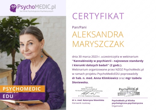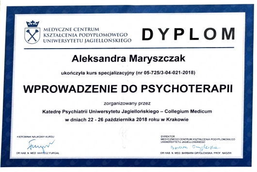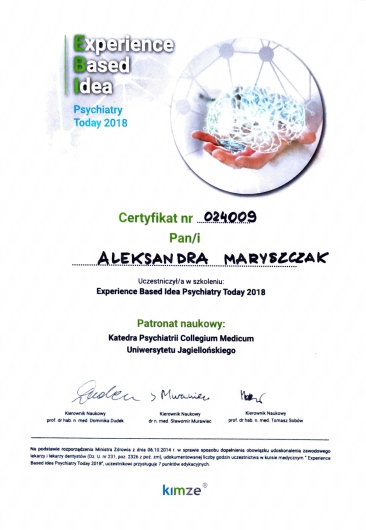 Swoje doświadczenie zawodowe zdobywałam pracując w poradni ambulatoryjnej, na oddziałach dziennych i stacjonarnych (ogólnopsychiatrycznych, psychiatrii dzieci i młodzieży, leczenia uzależnień) wśród wykwalifikowanej kadry specjalistów.