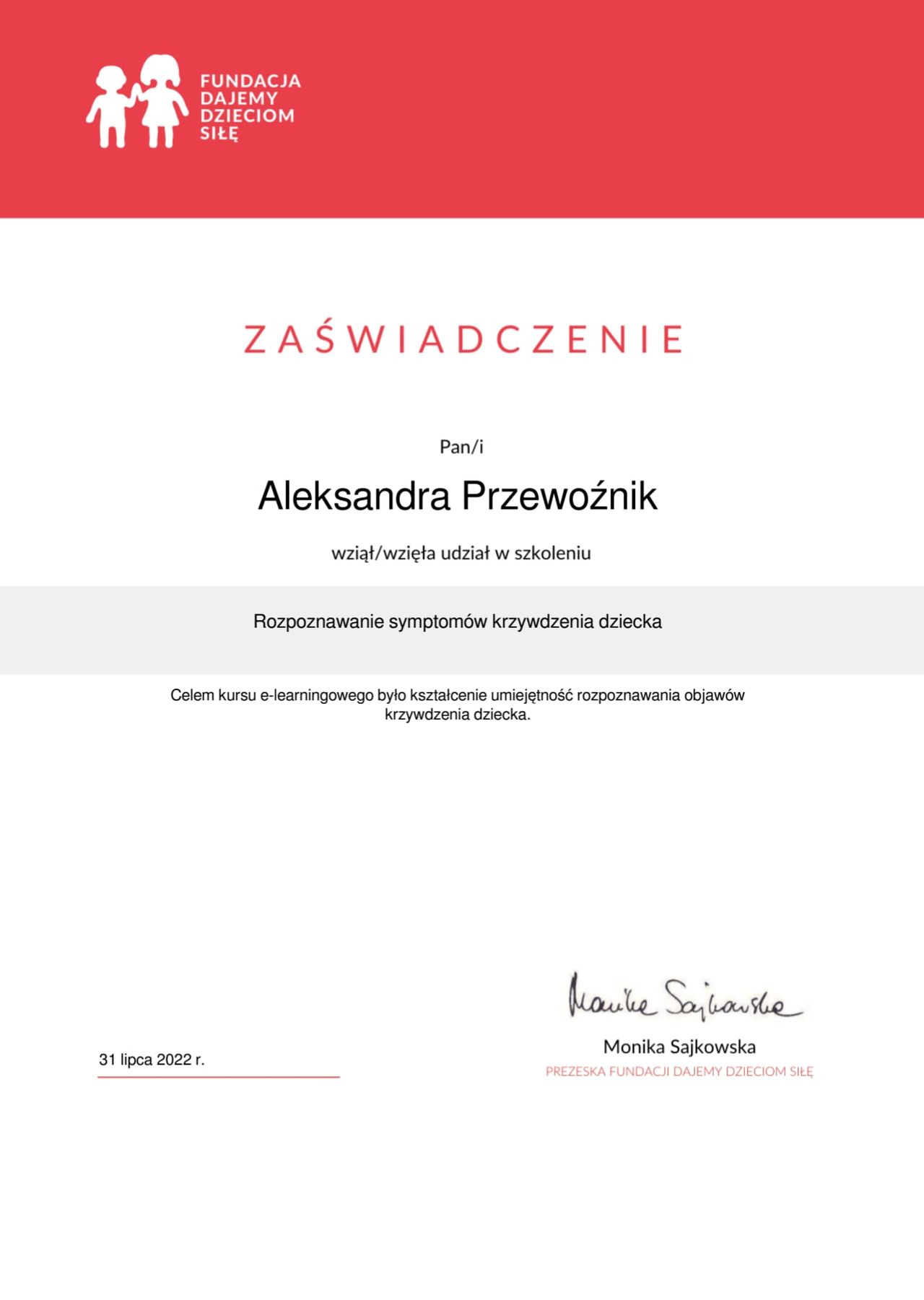 mgr Aleksandra Michalina Przewoźnik