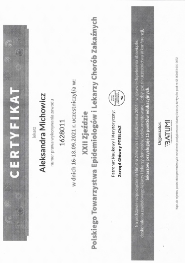 Jaki jest zakres porad oferowanych przez Aleksandra Michowicz?Aleksandra Michowicz to internista, lekarz chorób zakaźnych, biegły sądowy. Na podstawie swojego doświadczenia i wykształcenia Aleksandra Michowicz oferuje usługi takie jak: konsultacja internistyczna, konsultacja lekarza chorób zakaźnych, konsultacja lekarza medycyny podróży, konsultacja hepatologiczna.