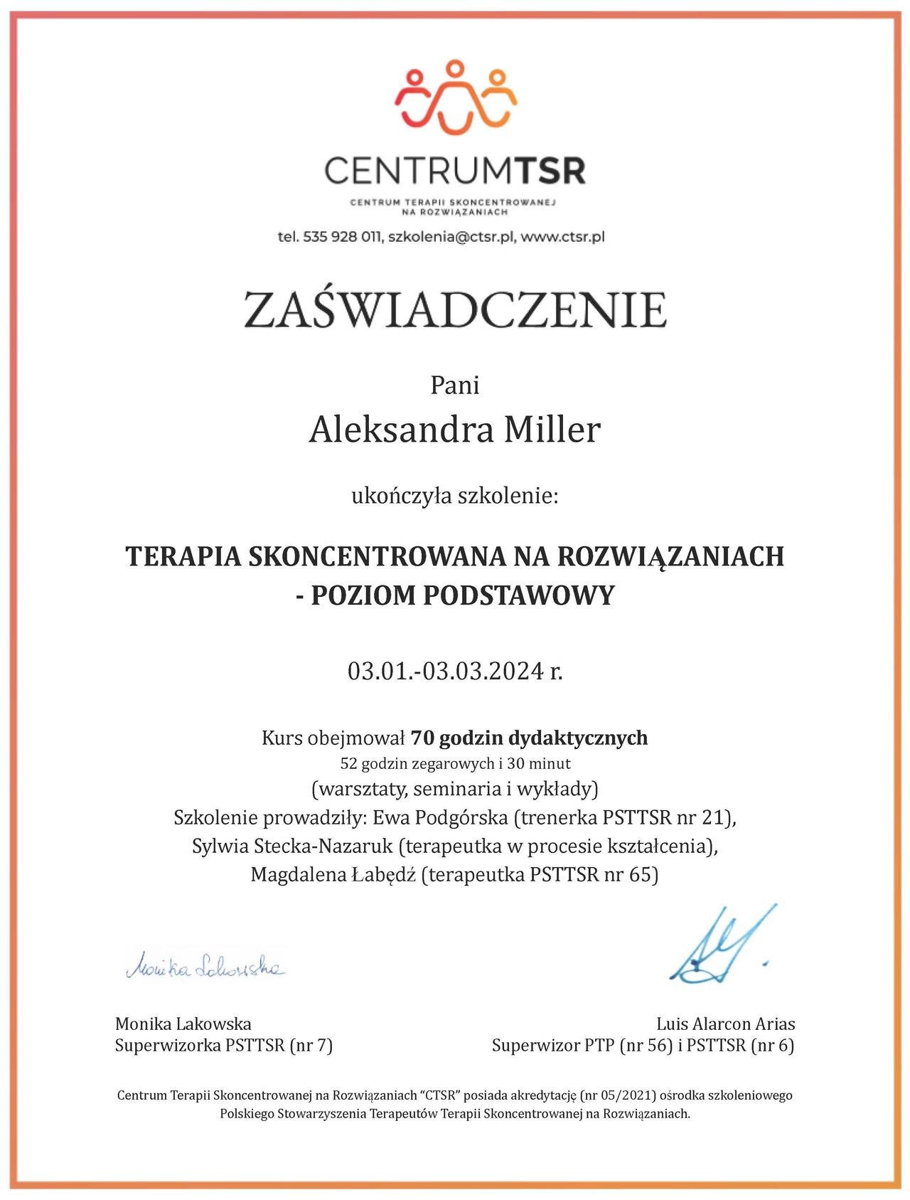 Gdzie Aleksandra Miller ma swój gabinet?Aleksandra Miller przyjmuje pod adresem: