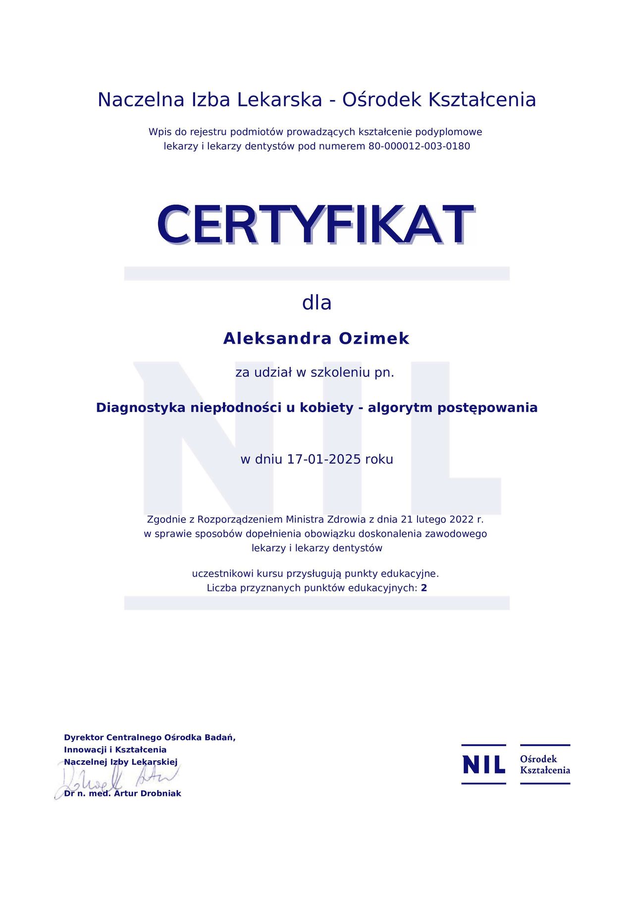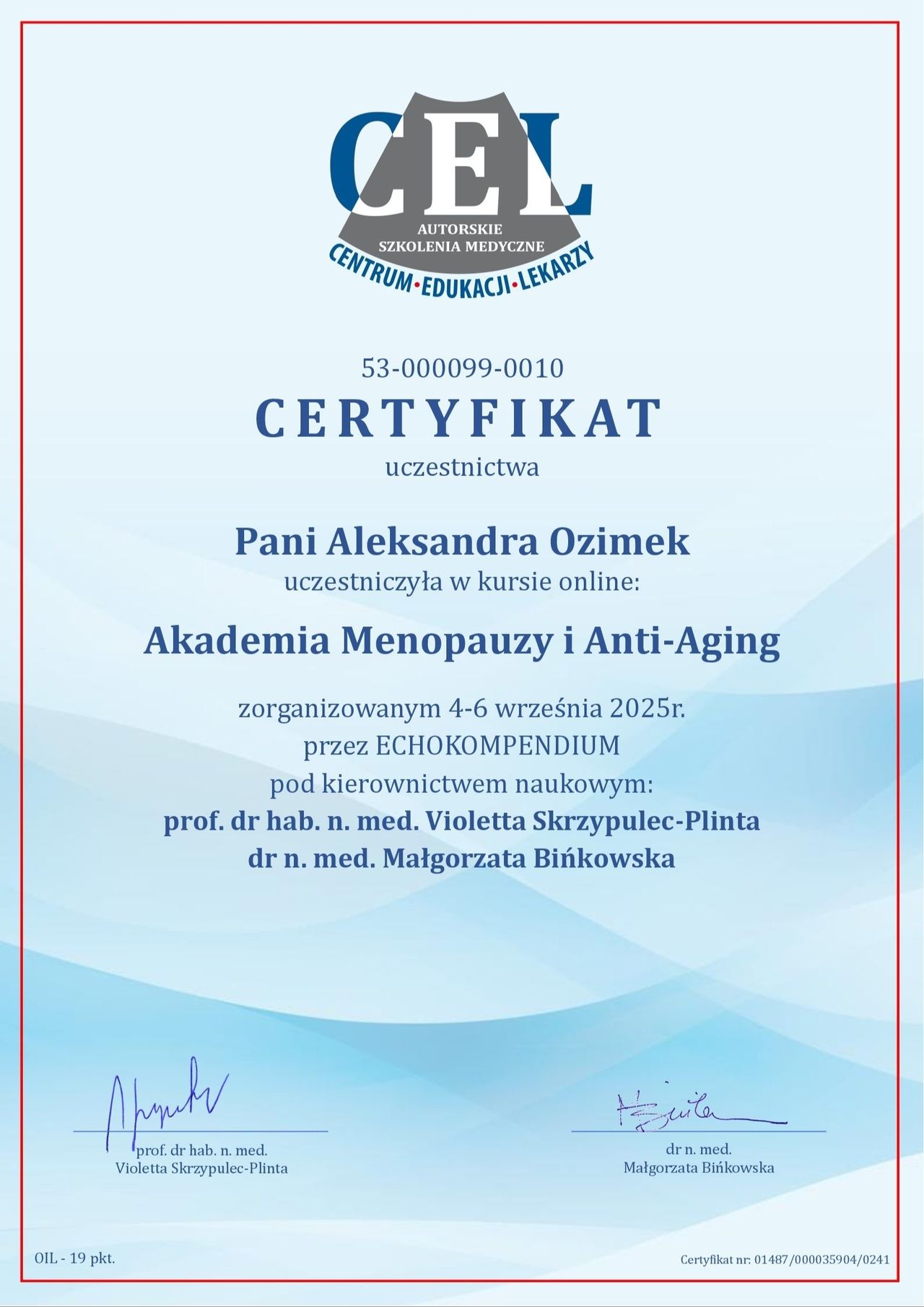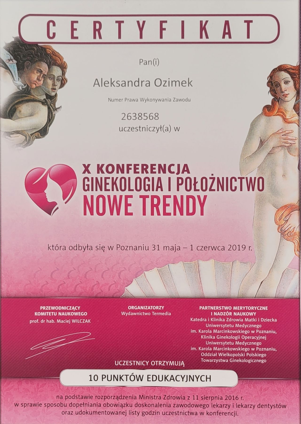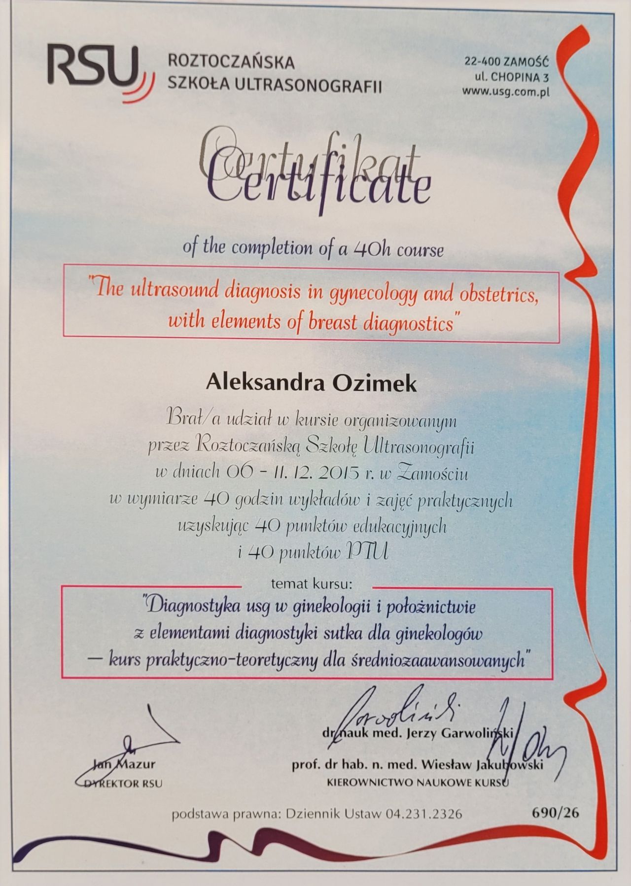 Jestem specjalistką ginekologii oraz certyfikowaną ultrasonografistką.