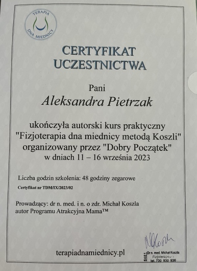 - Kurs fizjoterapii w obrębie zaburzeń dna miednicy u dr Koszli