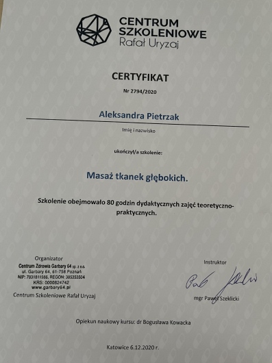 - Masaż tkanek głębokich (II moduły)