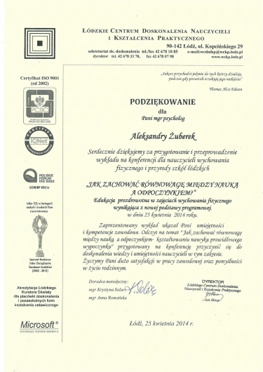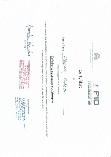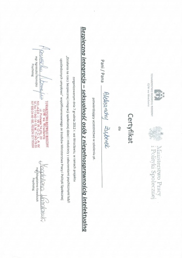 Staram się dbać o swój rozwój, korzystam ze szkoleń psychoterapeutycznych. Podlegam stałej superwizji u superwizorów integracyjnych i Gestalt.