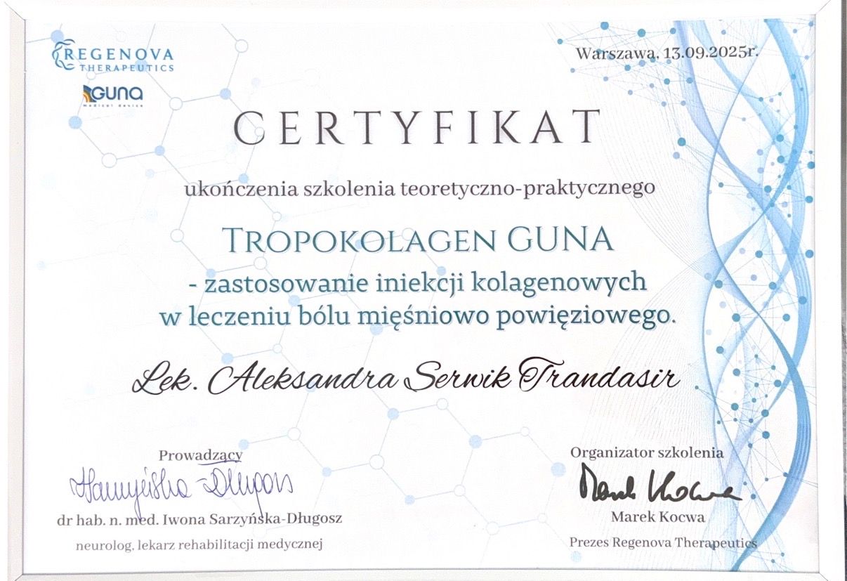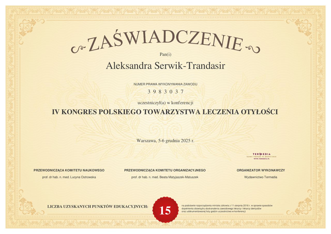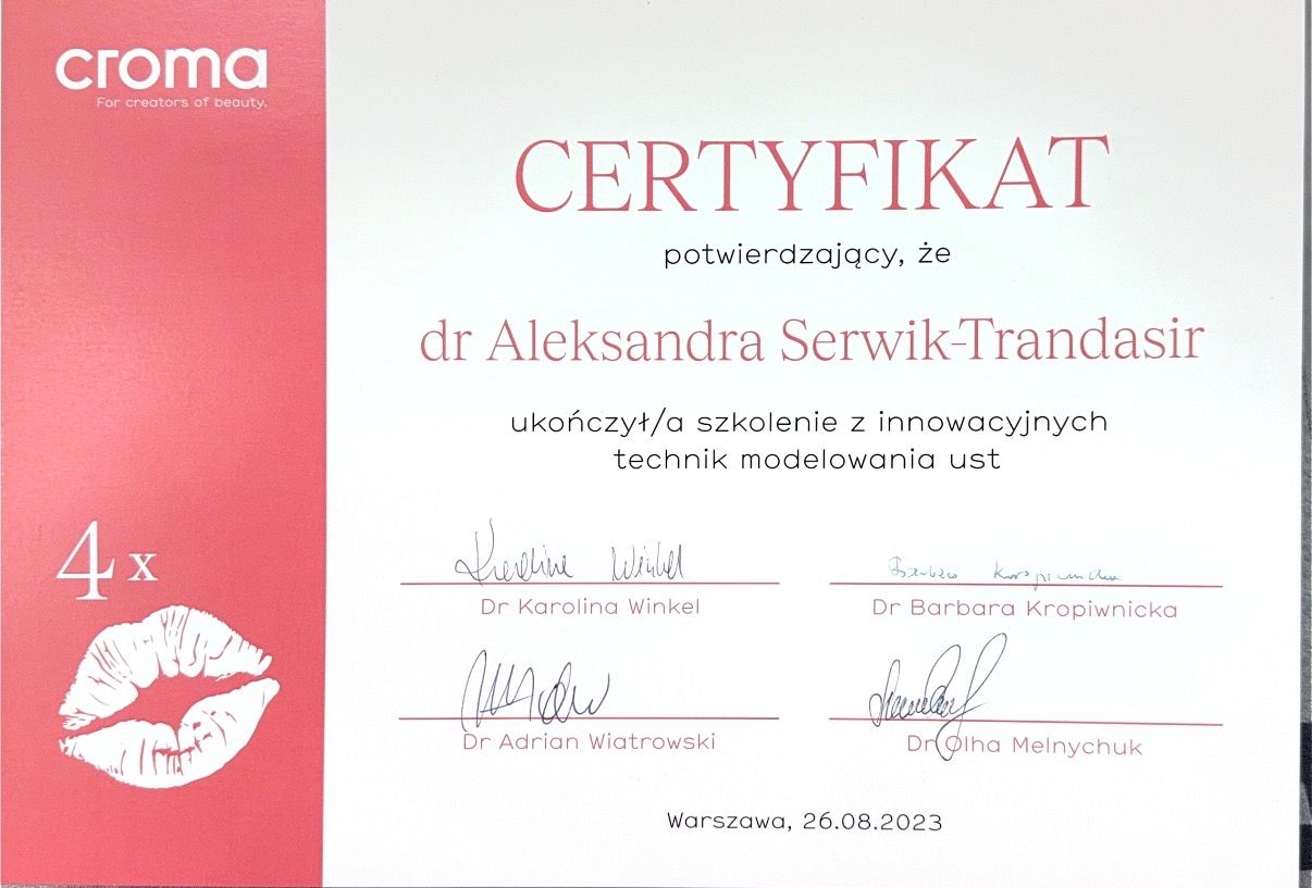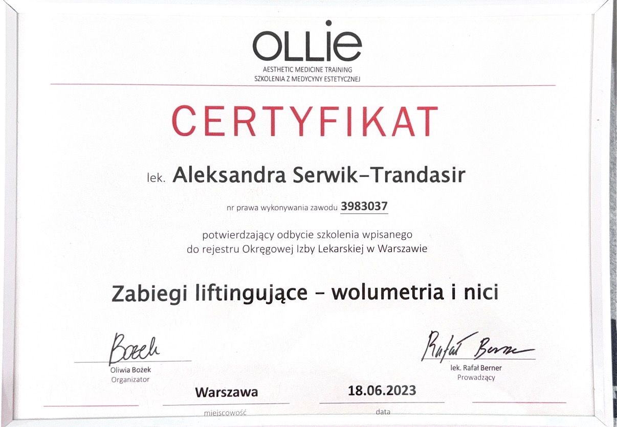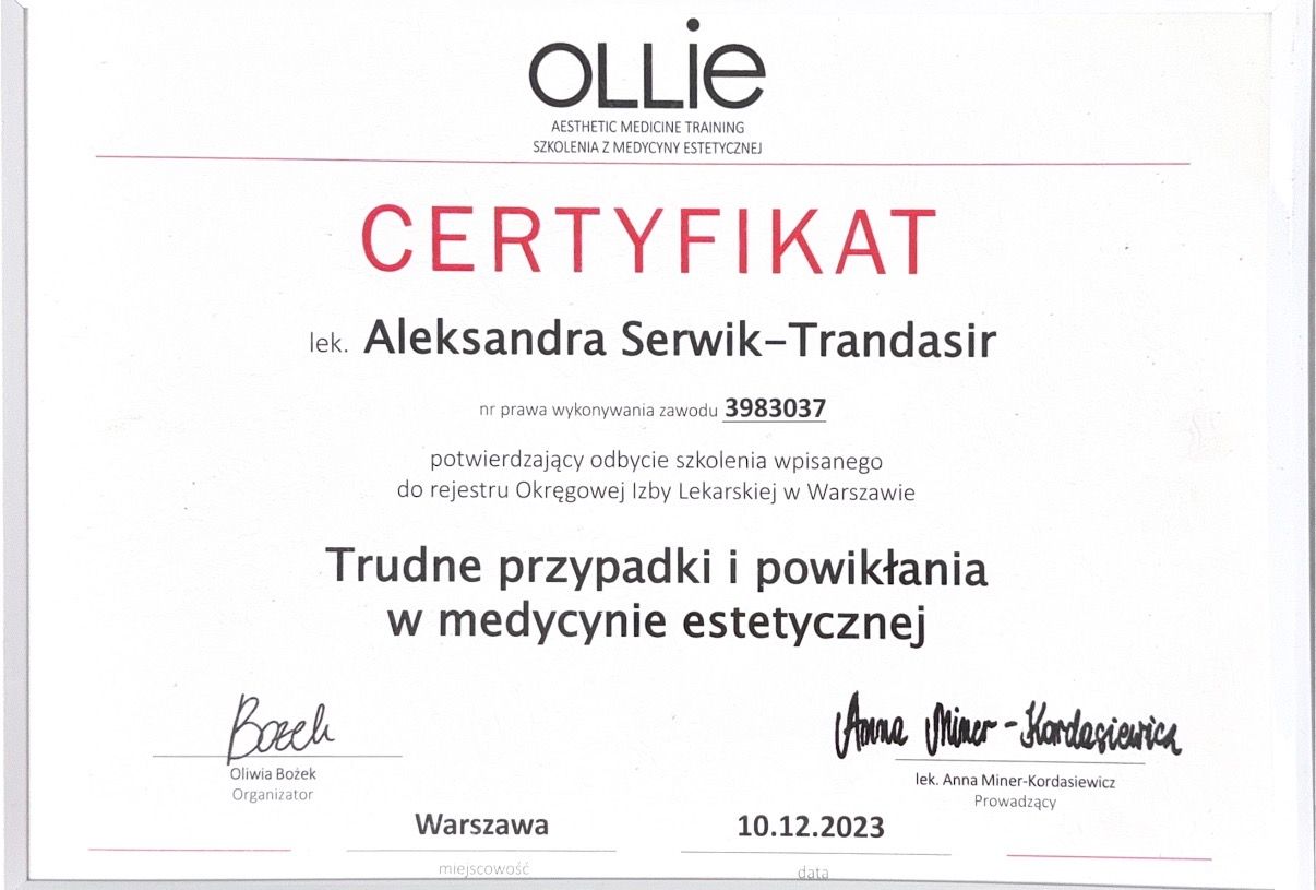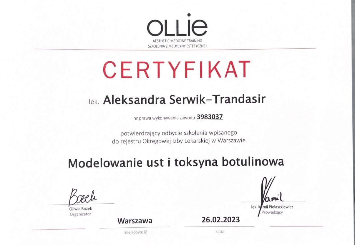 Nazywam się Aleksandra Serwik-Trandasir i jestem lekarką. Ukończyłam kierunek lekarski na Warszawskim Uniwersytecie Medycznym oraz kosmetologię na Uniwersytecie Medycznym w Łodzi (studia licencjackie oraz magisterskie). Obecnie jestem w trakcie rezydentury z Medycyny Rodzinnej.