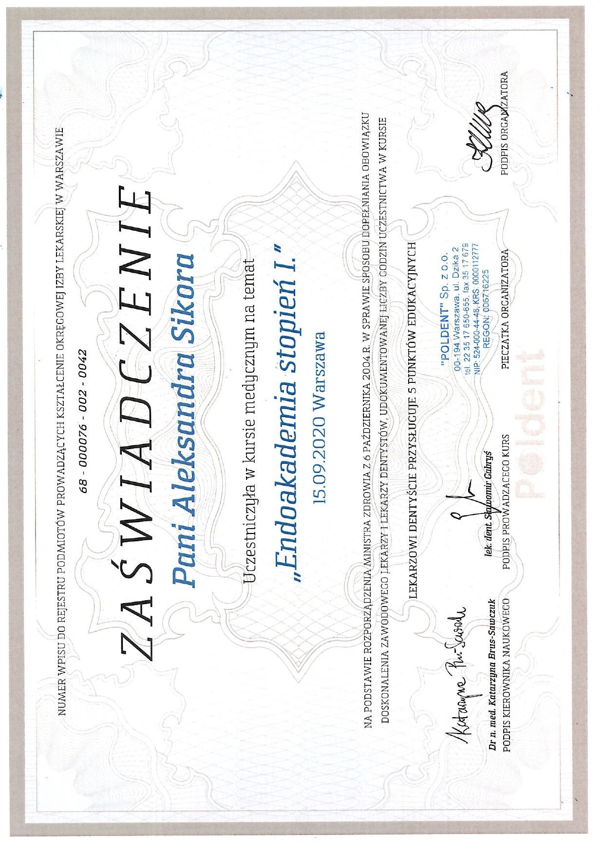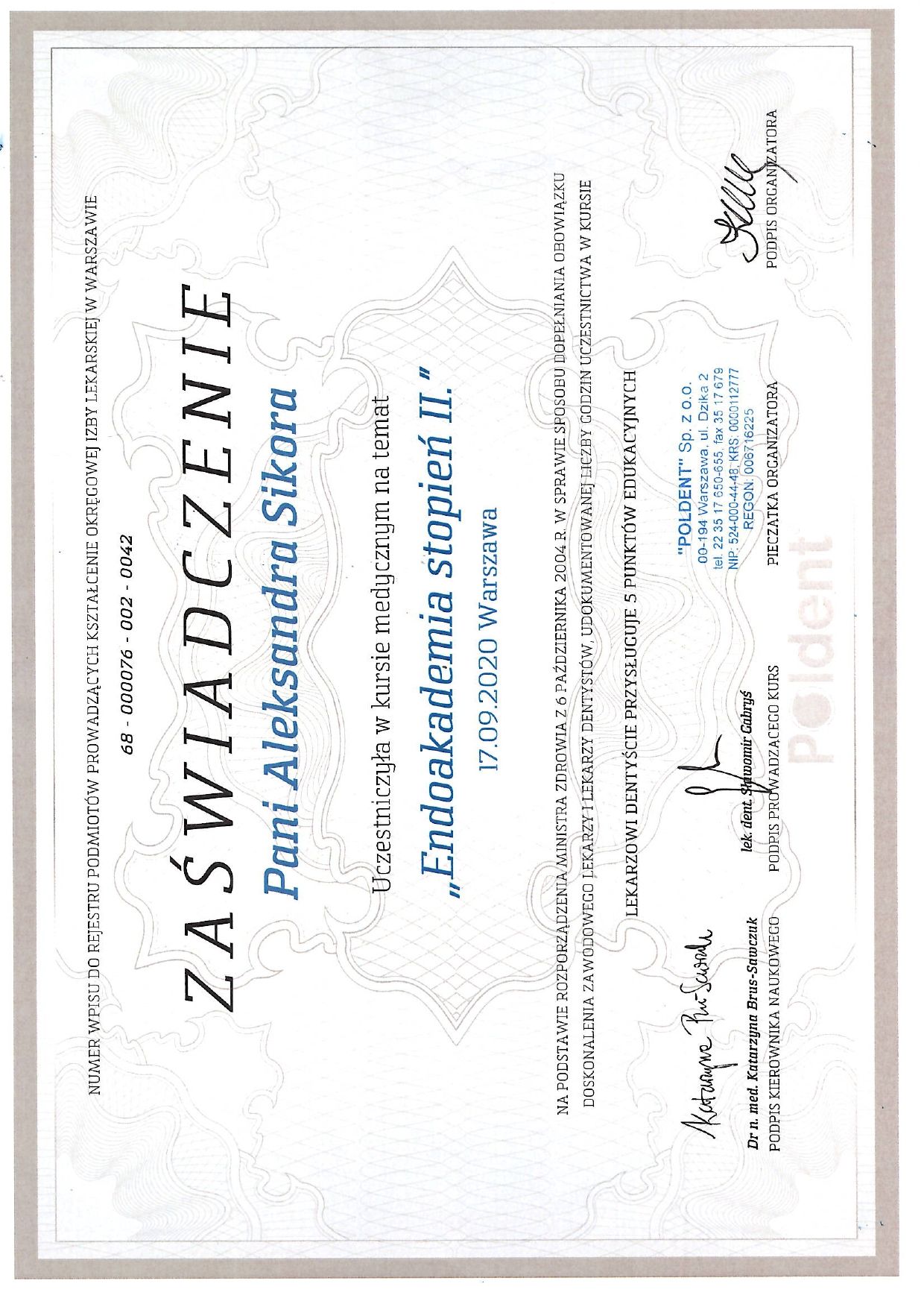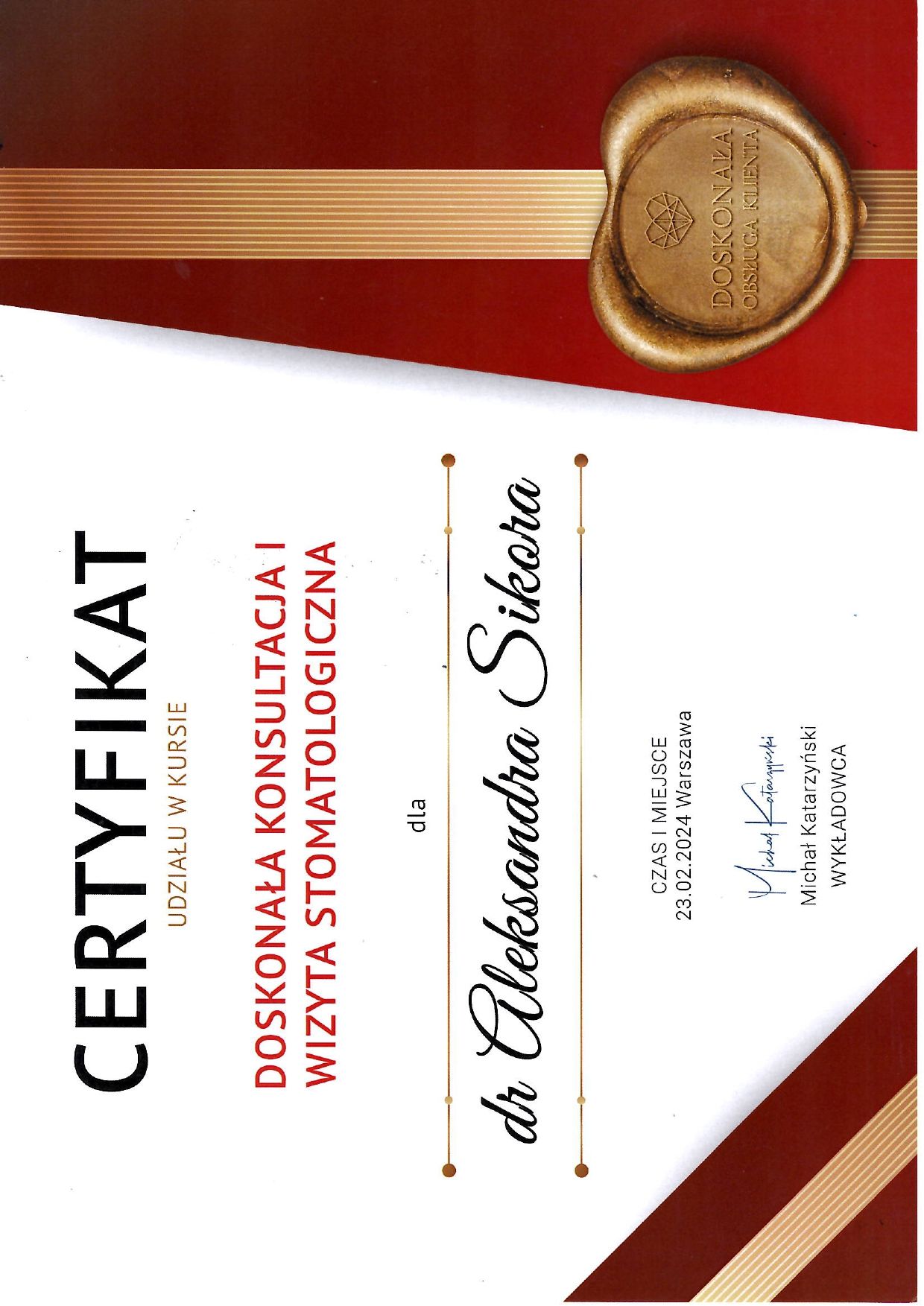 Bardzo dziękujemy za zaufanie oraz miłe słowa! Cieszymy się, że jest Pani zadowolona z opieki lek. dent. Aleksandry Sikory. Zawsze staramy się zapewniać jak najwyższy standard leczenia. Do zobaczenia na kolejnej wizycie!