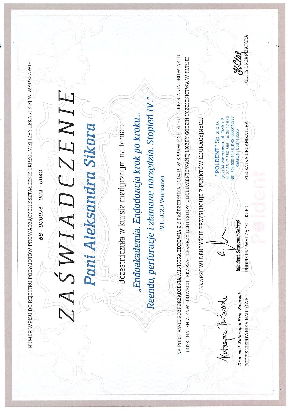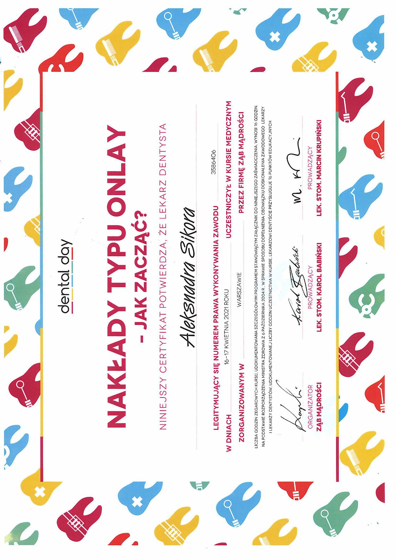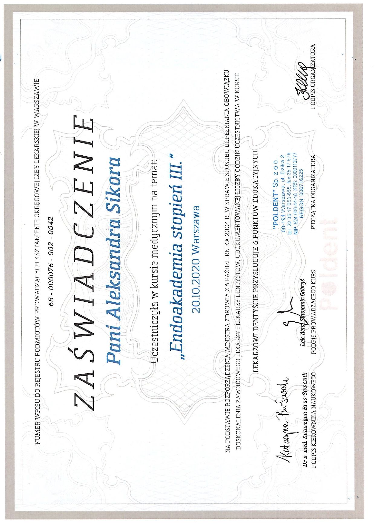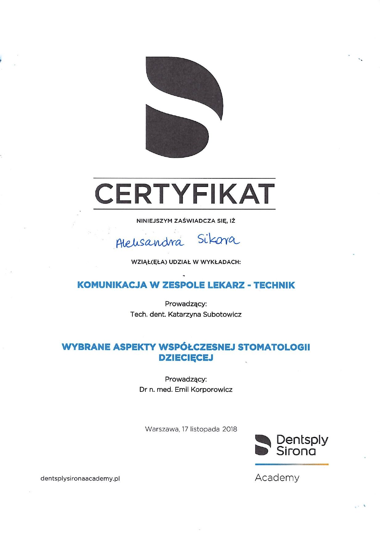 Bardzo dziękujemy za zaufanie oraz miłe słowa! Cieszymy się, że jest Pani zadowolona z opieki lek. dent. Aleksandry Sikory. Zawsze staramy się zapewniać jak najwyższy standard leczenia. Do zobaczenia na kolejnej wizycie!