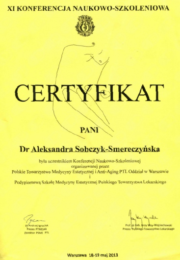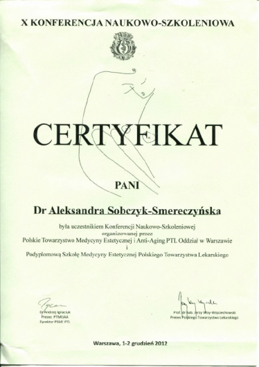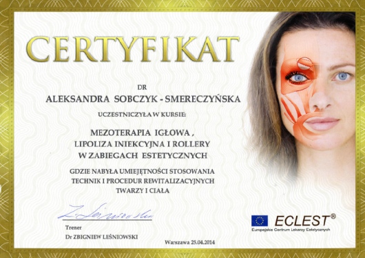 Medycyną estetyczną zajęłam się w 2010r. Z uwagi na stałą chęć podnoszenia swoich kwalifikacji niedługo później rozpoczęłam 3 letnie podyplomowe studia w Polskiej Szkole Medycyny Estetycznej w Warszawie. Doświadczenie i wiedzę stale poszerzam poprzez udział w licznych szkoleniach, kongresach, konferencjach.