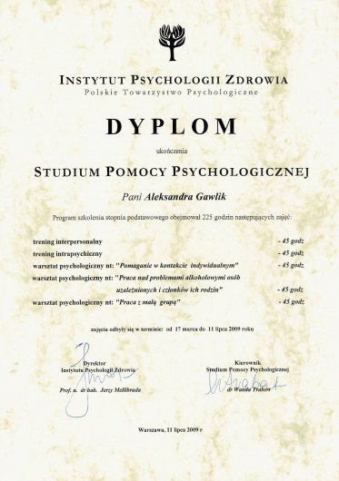 Pani Aleksandra to uważna i profesjonalna terapeutka. Od pierwszego spotkania czułam się przy niej bezpiecznie i swobodnie. Nigdy nie doświadczyłam z jej strony oceny, co pozwoliło mi otworzyć się nawet w najbardziej wstydliwych i trudnych dla mnie tematach.