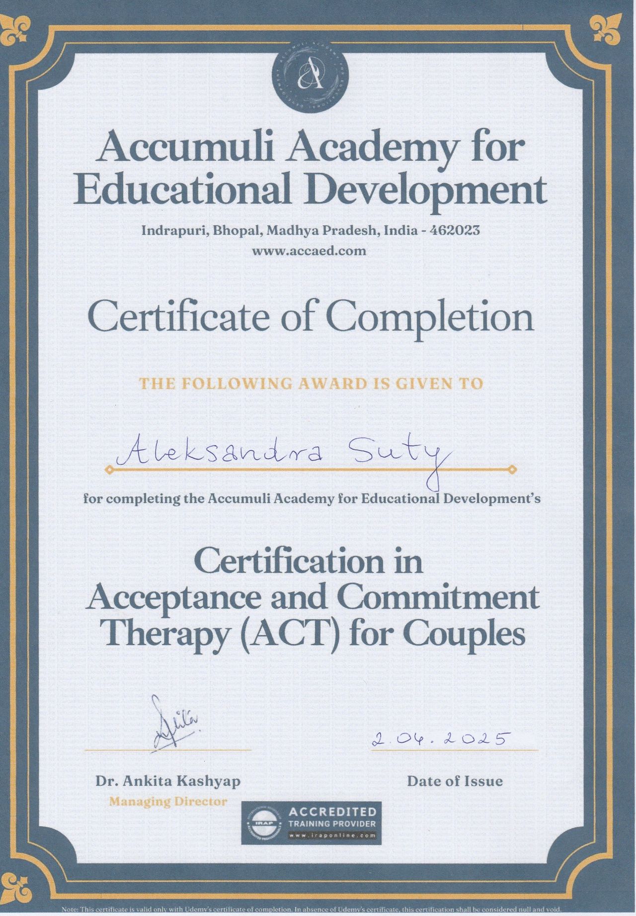 - Training “ACT – Acceptance and Commitment Therapy,” IPRI (2023)