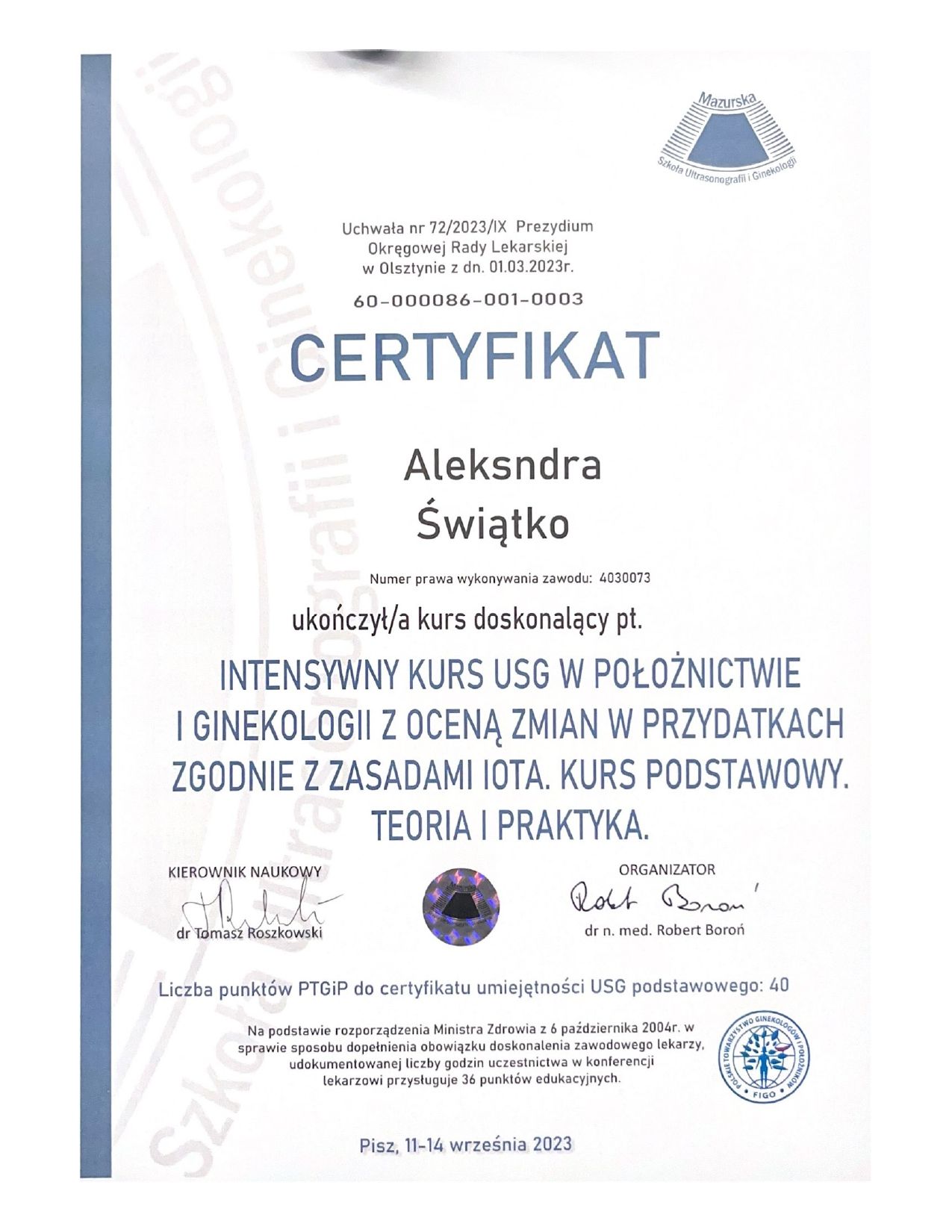 Jestem członkinią PTGiP. Posiadam certyfikat Ultrasonografii w Ginekologii i Położnictwie.