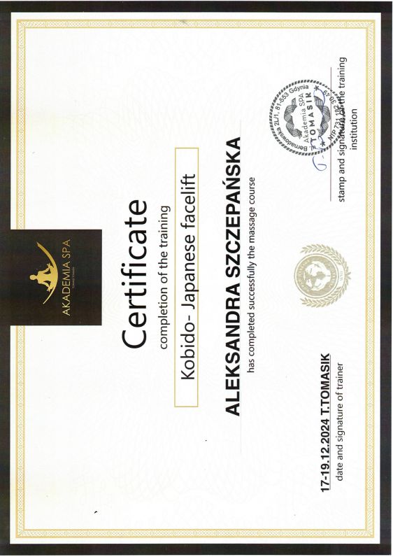 Pani Aleksandra jest wspaniałą i empatyczną osobą. Masaż Kobido był na najwyższym poziomie, czułam się zaopiekowana i zrelaksowana. Z przyjemnością mogę polecić Panią Olę :)