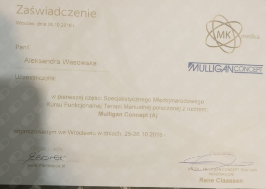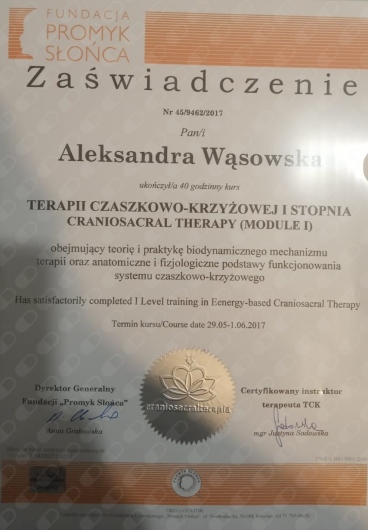 Wizyta przebiegła w bardzo sympatycznej atmosferze. Pani Aleksandra dokładnie wszystko wyjaśniła i przeszła do działania. Już po pierwszej wizycie czuć poprawę. Serdecznie polecam .