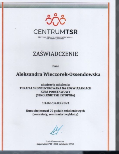 Jaki jest zakres porad oferowanych przez Aleksandra Wieczorek-Ossendowska?Aleksandra Wieczorek-Ossendowska to psycholog, psychoonkolog, psychoterapeuta certyfikowany. Na podstawie swojego doświadczenia i wykształcenia Aleksandra Wieczorek-Ossendowska oferuje usługi takie jak: Konsultacja indywidualna osoby z diagnozą onkologiczną, terapia psychoonkologiczna, Psychoterapia, poradnictwo psychologiczne, konsultacja psychologiczna (pierwsza wizyta), Terapia EMDR, brainspotting, psychoterapia traumy, terapia krótkoterminowa TSR.