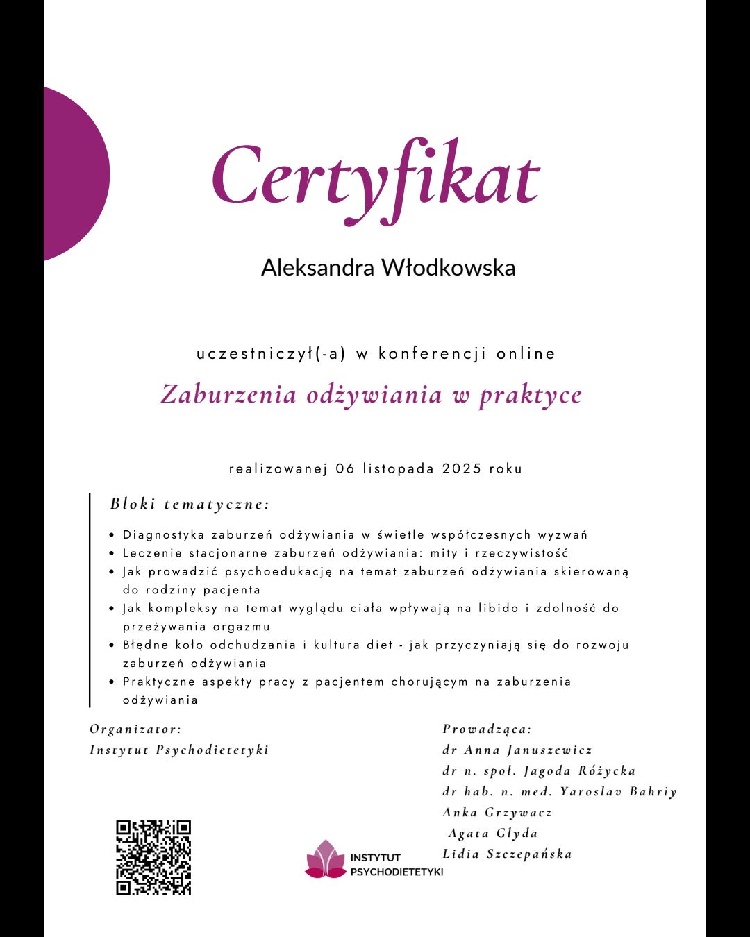 • Psychodietetyk, psycholog Aleksandra Włodkowska GABINET ONLINE • konsultacja online •