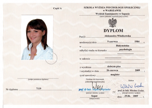 Bardzo polecam Panią Aleksandrę Włodkowską, zgłosiłam się do niej pod koniec sierpnia i dzięki temu,że spróbowałam coraz bardziej żyje.Jest Pani Aleksandra pierwszym moim psychologiem i myślę, że lepiej nie mogłam trafić.