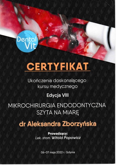 Nie wyobrażam sobie współczesnej stomatologii bez pracy w powiększeniu - dlatego odkąd ukończyłam studia wykonuję leczenie kanałowe z użyciem mikroskopu. Dzięki temu moja praca jest precyzyjna i wysoce skuteczna!