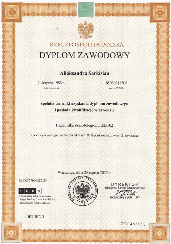 Jaki jest zakres porad oferowanych przez Aliaksandra Sarkisian ?Aliaksandra Sarkisian to higienistka/higienista stomatologiczny. Na podstawie swojego doświadczenia i wykształcenia Aliaksandra Sarkisian oferuje usługi takie jak: pakiet higienizacyjny z instruktażem.