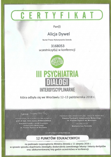 Nigdy nie wyszłam z gabinetu lekarskiego z tak dużym uśmiechem i lekkim sercem. Przez lata zmagałam się z czymś, czemu Pani Alicja zaradziła w dość krótkim czasie. Jest przekochaną, profesjonalną i życzliwą specjalistką, pełną ciepła i zaangażowania. Pomogła mi Pani wrócić „do siebie” i zacząć żyć bez ciężaru.