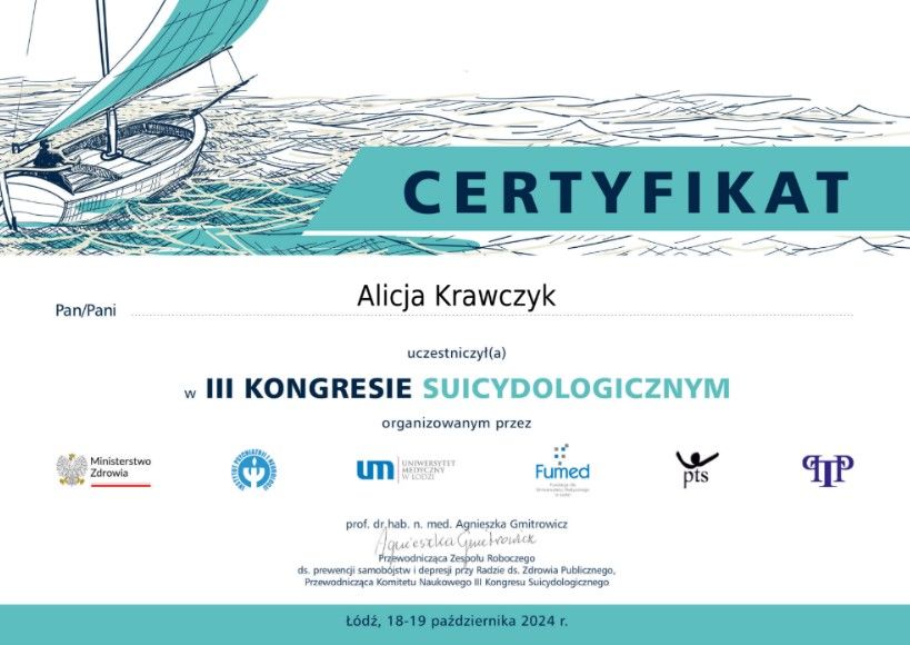 Chciałabym wyrazić ogromną wdzięczność dla Alicji – psychologa, który nie tylko pomógł mi poradzić sobie z trudnościami, ale też pokazał, że nawet w najciemniejszych chwilach można odnaleźć światło. Jej empatia, uważność i mądrość sprawiają, że rozmowa z nią to coś więcej niż terapia – to prawdziwe spotkanie człowieka z człowiekiem.