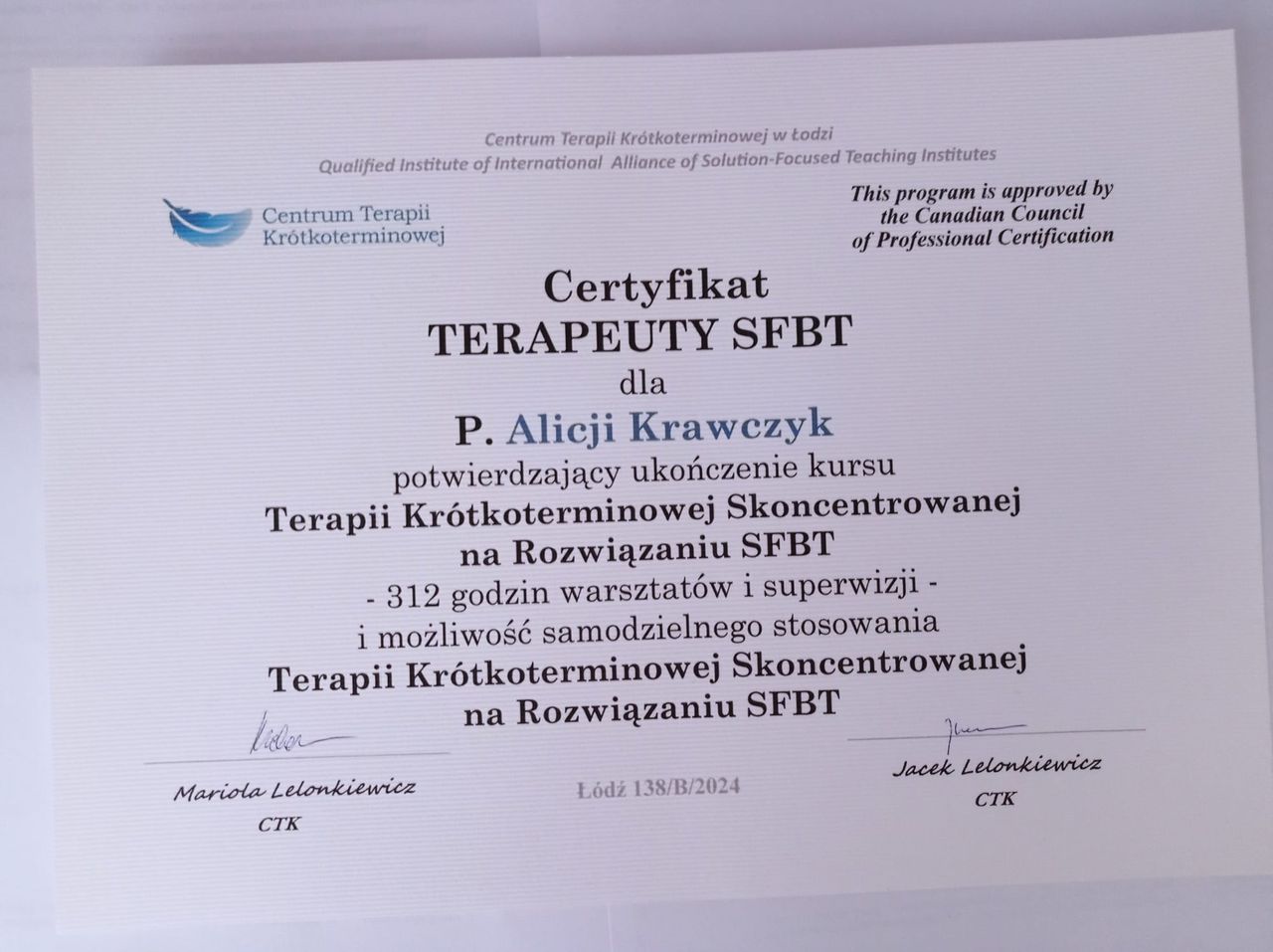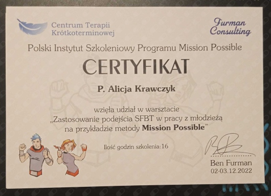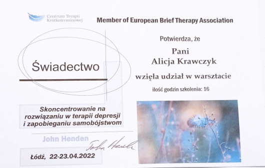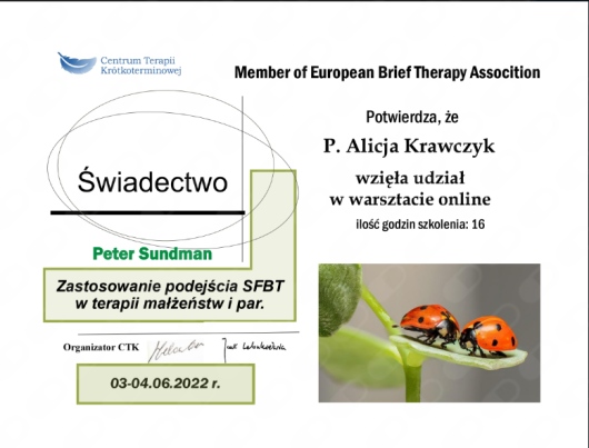 Polecam spotkania terapeutyczne z Panią Alicją.