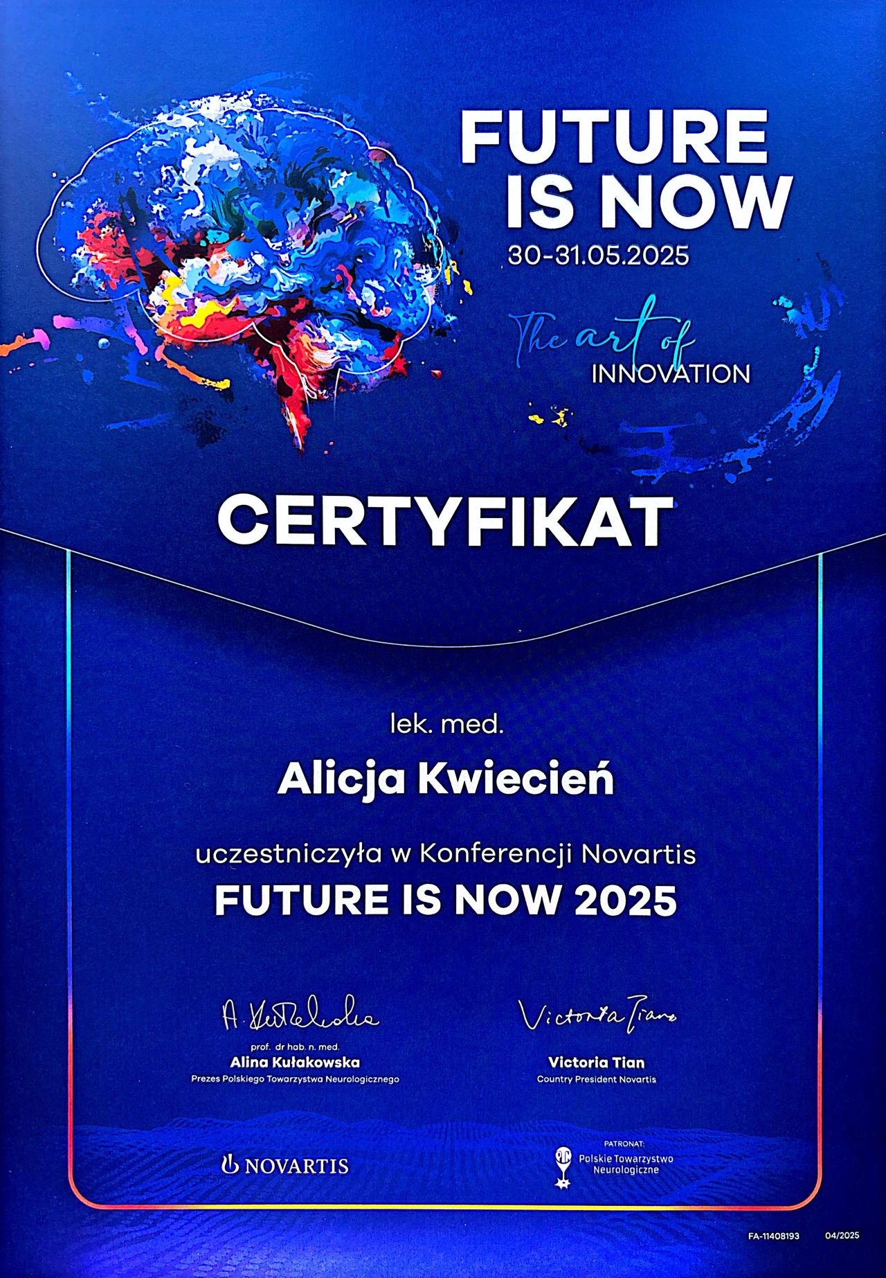 Jaki jest zakres porad oferowanych przez Alicja Kwiecień?Alicja Kwiecień to w trakcie specjalizacji (neurolog). Na podstawie swojego doświadczenia i wykształcenia Alicja Kwiecień oferuje usługi takie jak: Konsultacja neurologiczna, konsultacja geriatryczno-neurologiczna, diagnostyka i leczenie zawrotów głowy, Leczenie bólu.