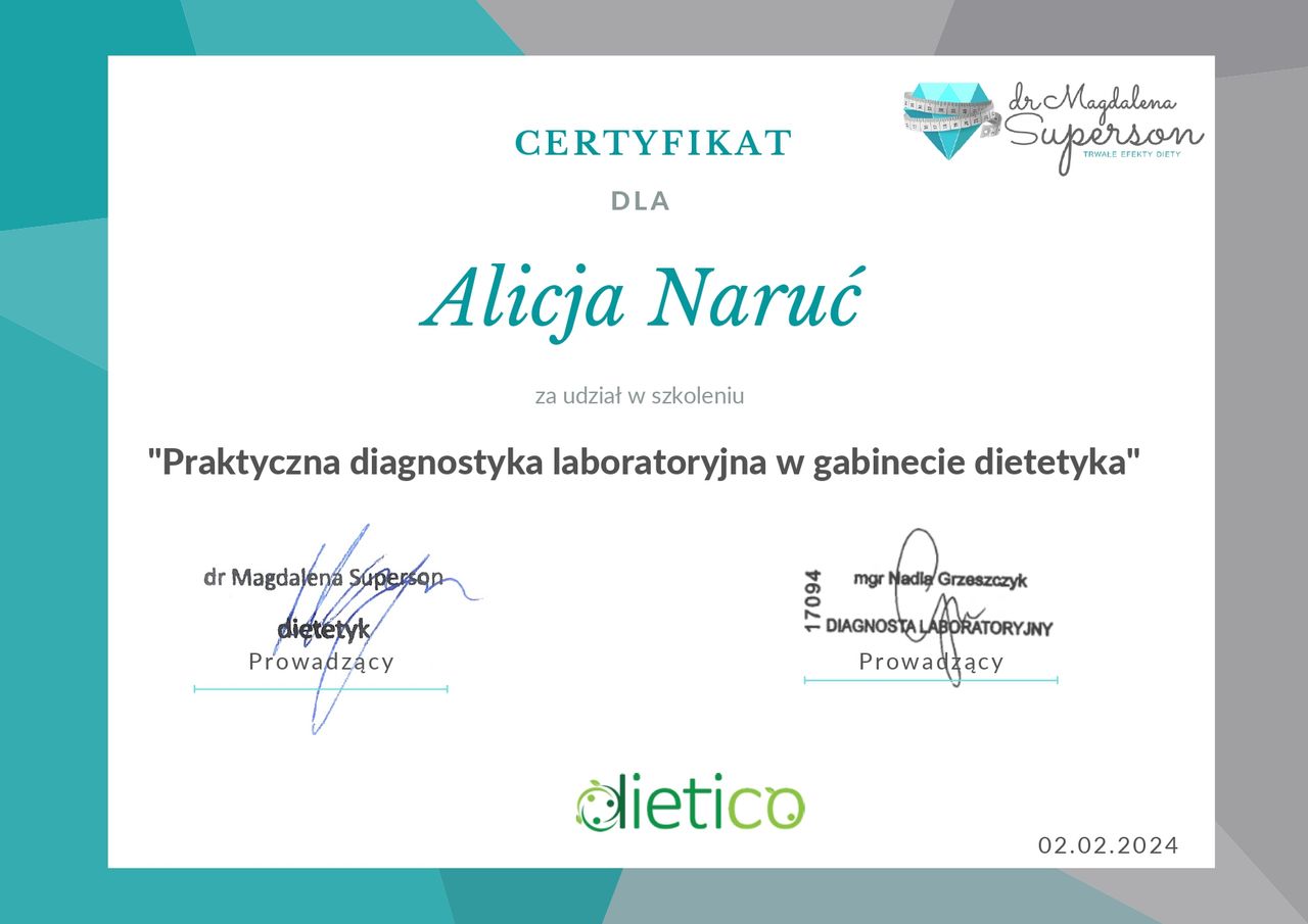 Jestem absolwentką studiów licencjackich Uniwersytetu Medycznego we Wrocławiu (2012 r.), studiów magisterskich na Uniwersytecie Medycznym w Poznaniu na kierunku dietetyka na Wydziale Lekarskim (2014 r.), a także studiów podyplomowych z Psychodietetyki na Uniwersytecie Humanistycznospołecznym we Wrocławiu (2015 r.), gdzie zdobyłam wiedzę na temat psychologicznych aspektów odżywiania oraz skutecznego motywowania w zmianie zachowań zdrowotnych. W trakcie studiów odbywałam liczne praktyki, m.in. w szpitalach, czy poradniach specjalistycznych, dzięki którym zdobyłam wiedzę na temat żywienia w różnych jednostkach chorobowych.