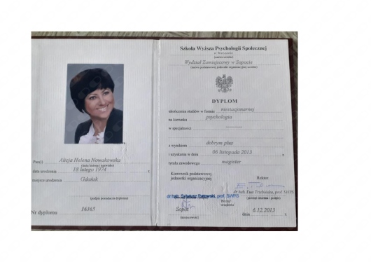 Szczerze polecam Panią Alicję. Jest bardzo zaangażowana i pomocna, potrafi słuchać i analizować problemy. Podczas spotkania, uspokoiłam emocje, czułam się wysłuchana i zrozumiana.