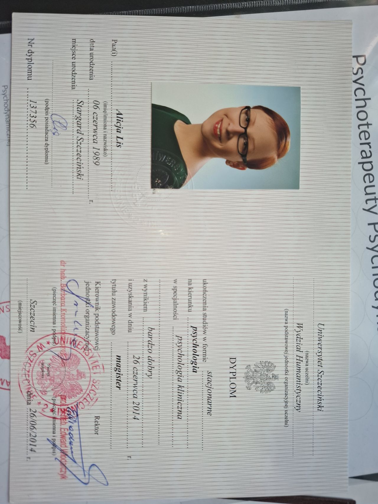 Pani Alicja jest osobą bardzo empatyczną iwrażliwą.Tworzy atmosferę zrozumienia i bezpieczeństwa.Uważnie słucha,nie ocenia,pomaga spojrzeć na problemy z innej perspektywy.Jest profesjonalna,wspierająca i godna polecenia.Polecam z całego serca osobom,które szukają wsparcia i pomocy.