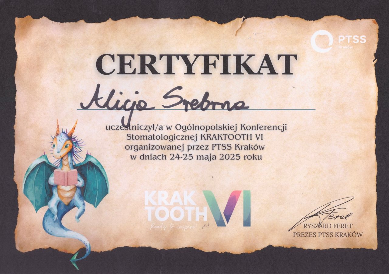 Pani Doktor to prawdziwa profesjonalistka ze świetnym podejściem do pacjenta. Wizyty zawsze przebiegają w miłej, spokojnej atmosferze. Pani Doktor wszystko jasno tłumaczy i na każdym etapie leczenia dba o komfort pacjenta. Cieszę się, że trafiłam właśnie do Niej – z czystym sumieniem mogę polecić każdemu, kto szuka naprawdę dobrego stomatologa.