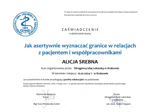 Pani Anno, serdecznie dziękujemy za tak miłe słowa i zaufanie, jakim nas Pani obdarzyła! Cieszymy się, że atmosfera oraz podejście Pani Alicji spełniły Pani oczekiwania. To dla nas ogromna motywacja, by nieustannie dbać o najwyższy standard opieki i komfort naszych Pacjentów. Do zobaczenia na kolejnej wizycie!