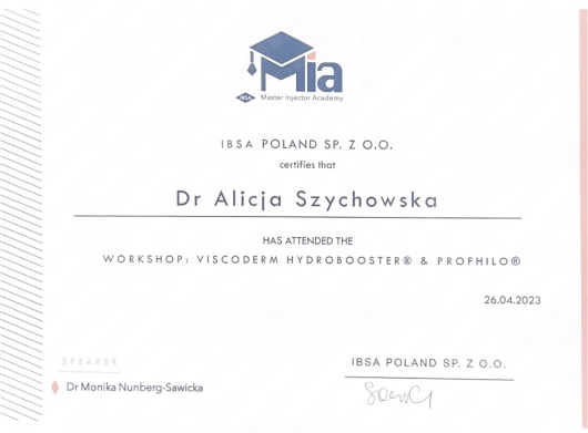 Polecam Panią doktor z całego serca! Dr Alicja to kompetentna i profesjonalna specjalistka a zarazem ciepła i przesympatyczna osoba. Podchodzi do swojego zawodu z dużym zaangażowaniem oraz pasją. Omawia dokładnie każdy etap zabiegu i dba o komfort pacjenta. Jestem bardzo usatysfakcjonowana i zadowolona z efektów pracy Pani doktor.