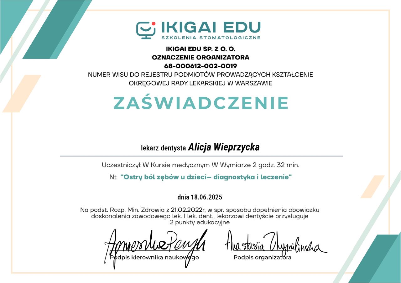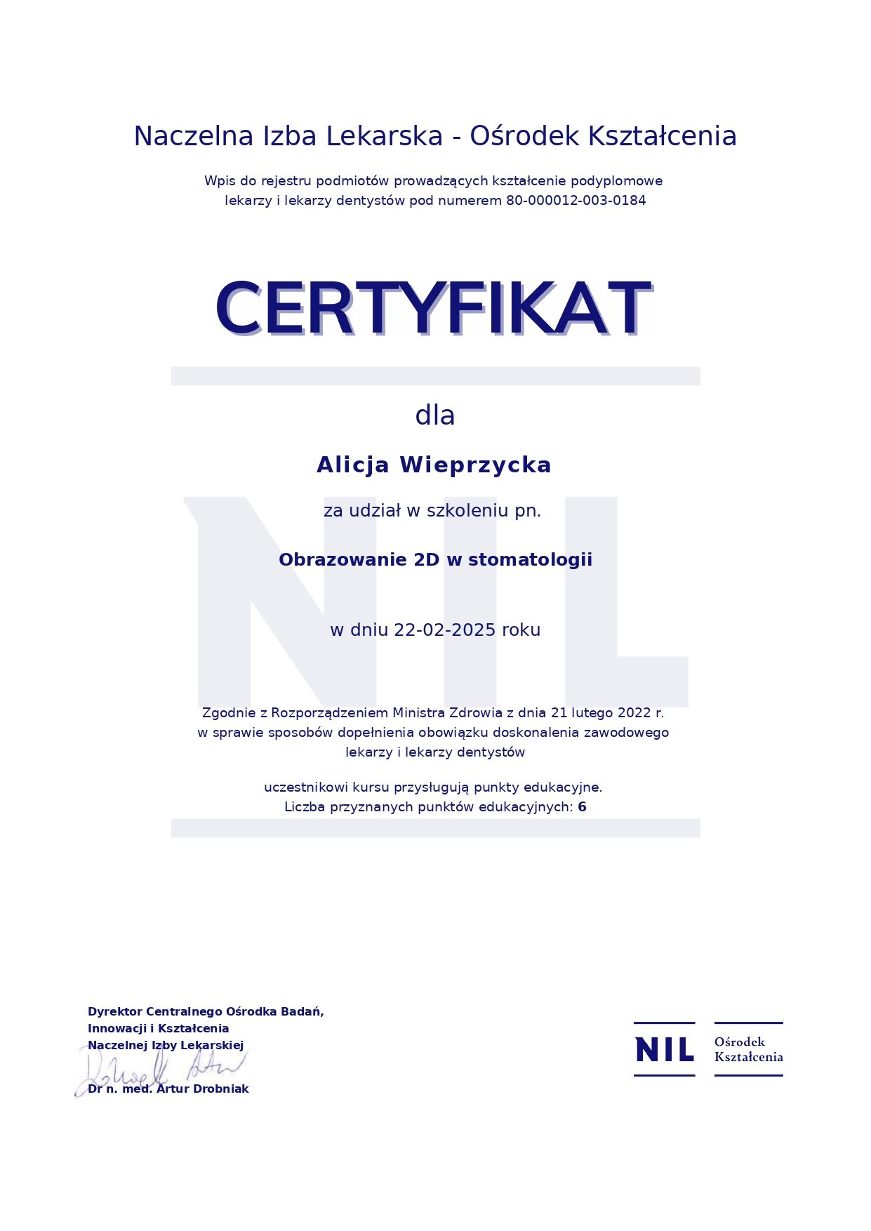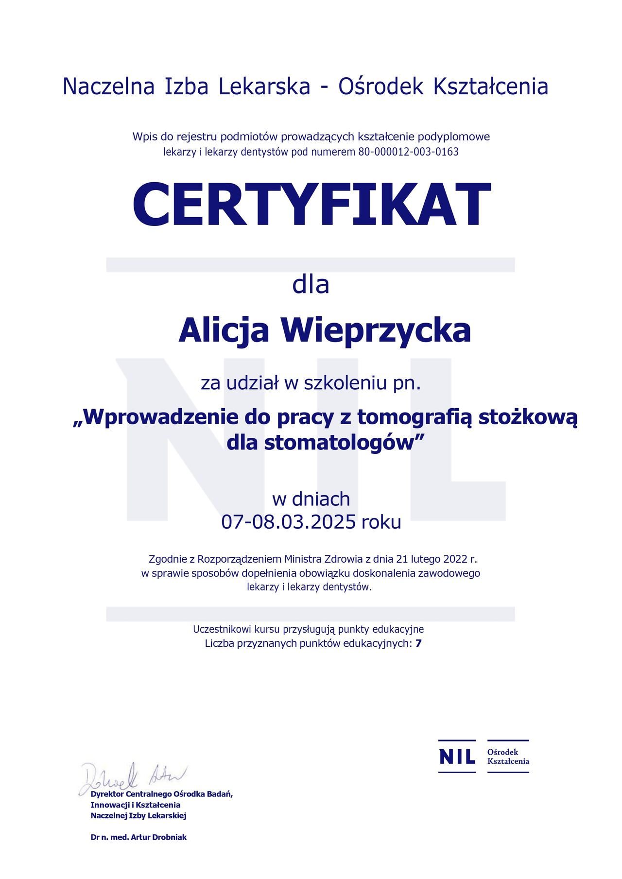 Zdecydowanie polecam wizytę u dr Alicji - niesamowite zaangażowanie i chęć pomocy pacjentowi wraz z profesjonalnym i skutecznym leczeniem, dawno nie byłam tak zadowolona z wizyty stomatologicznej