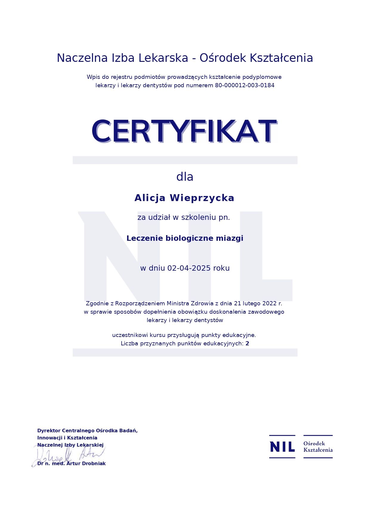 Nieustannie poszerzam swoją wiedzę i umiejętności, regularnie uczestnicząc w kursach i szkoleniach specjalistycznych.