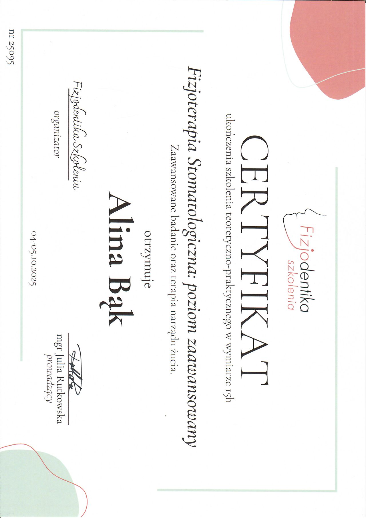 • Fizjoterapia stomatologiczna – poziom zaawansowany – Fizjodentika