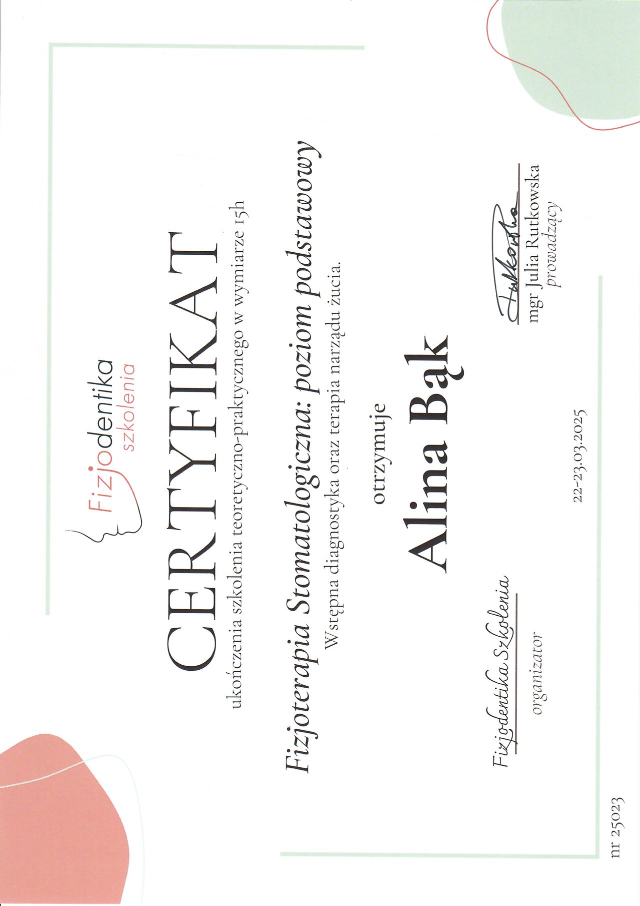 • Fizjoterapia stomatologiczna – poziom podstawowy – Fizjodentika