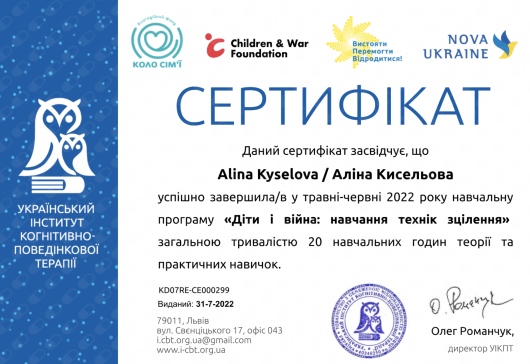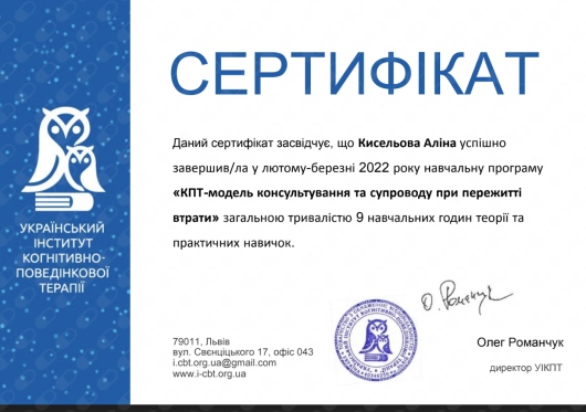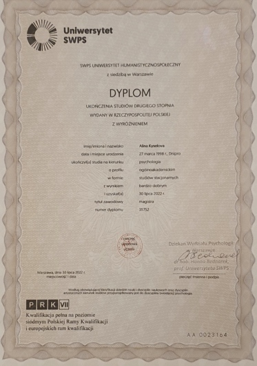 Мій досвід включає роботу з різними віковими групами - дітьми, підлітками та дорослими. Додатково, у мене є спеціалізація на діагностиці РДУГ, що дозволяє мені ефективно підтримувати осіб у широкому контексті їх труднощів.