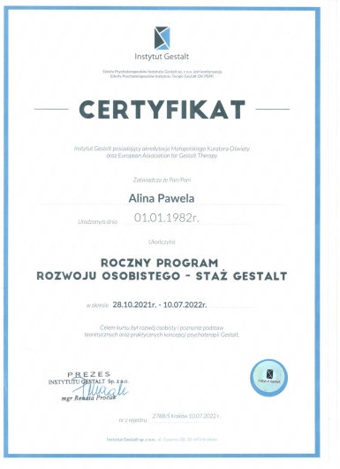 Zdecydowanie polecam!• Alina Pawela psychoterapia • •