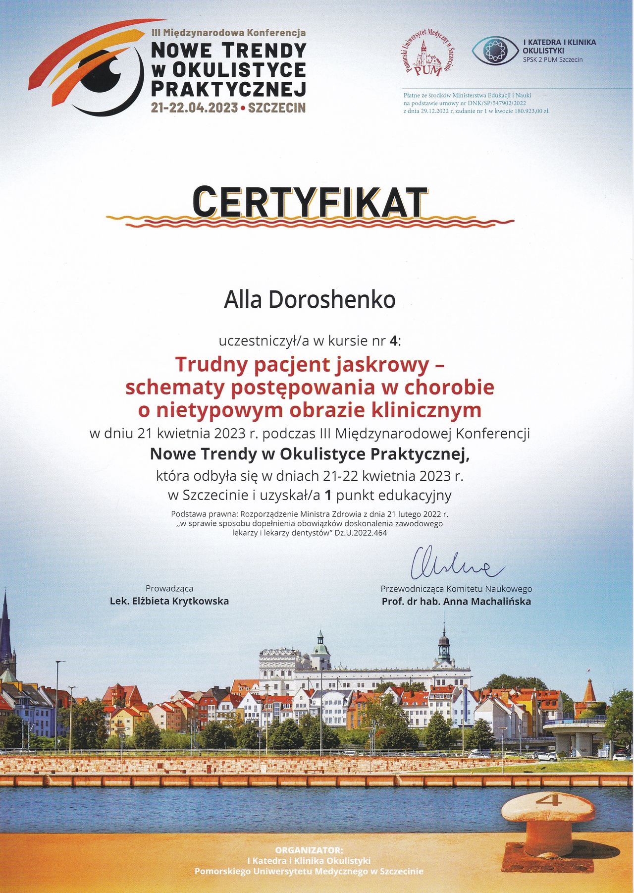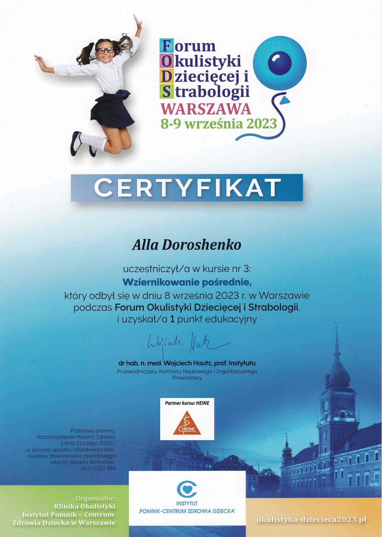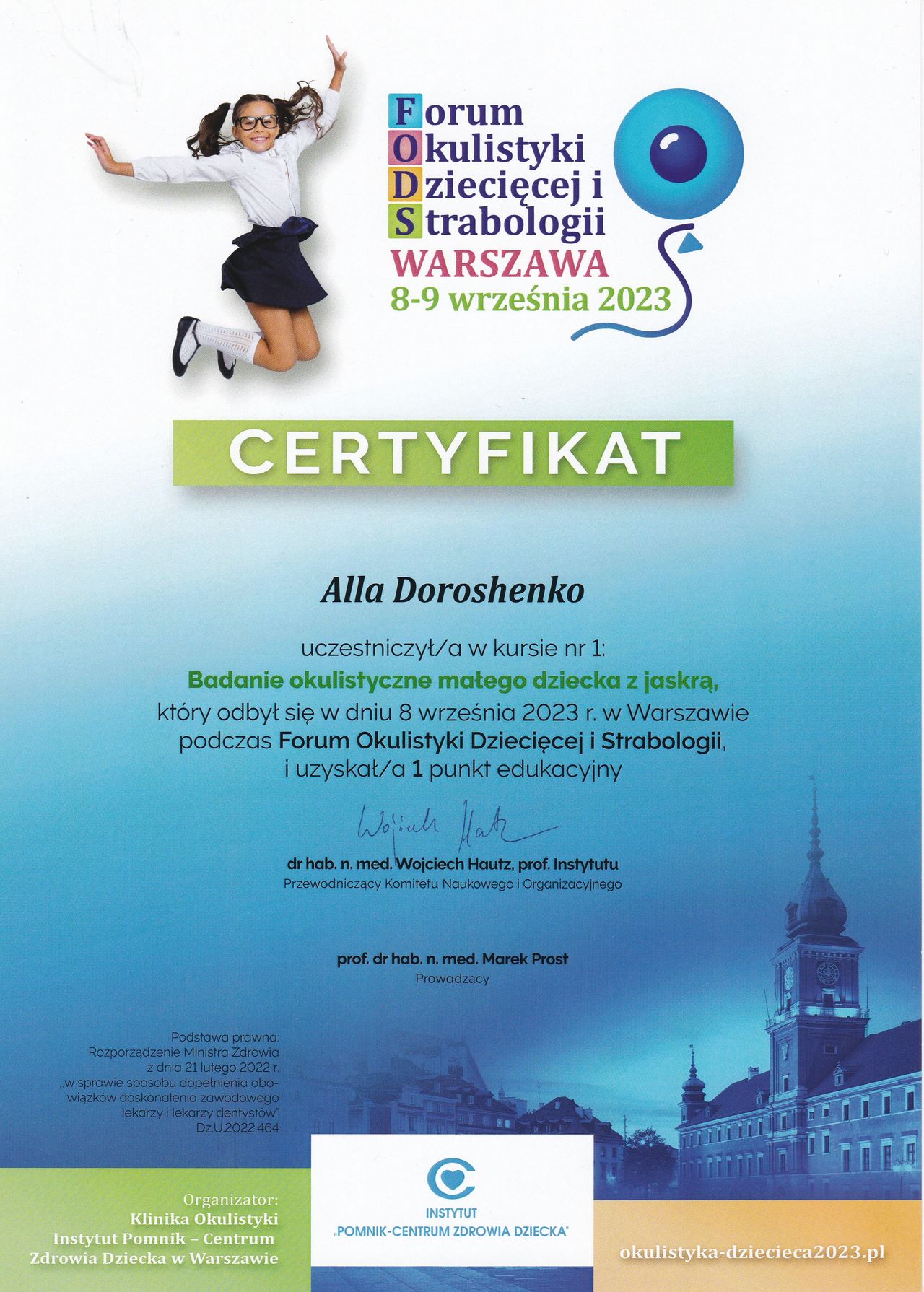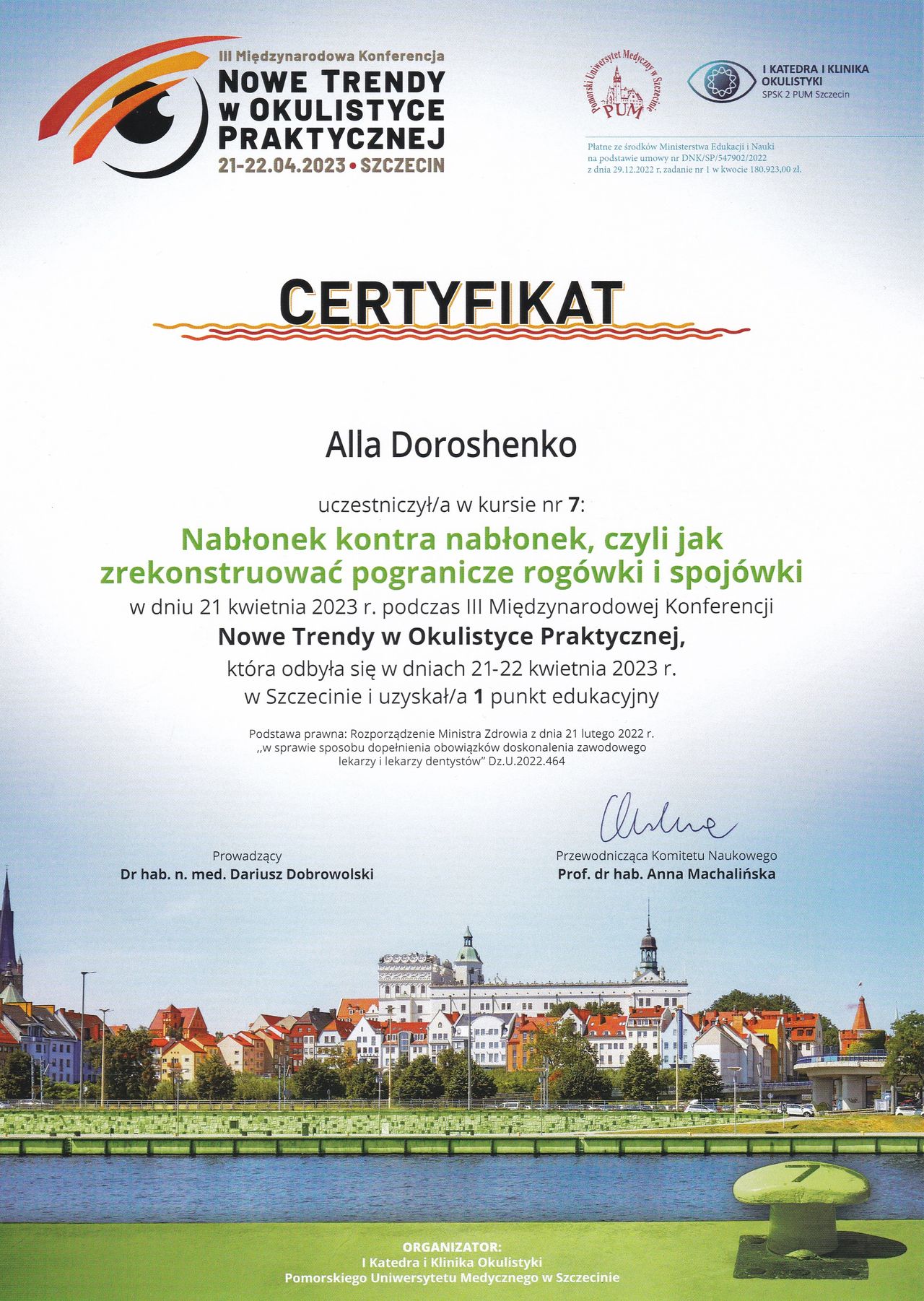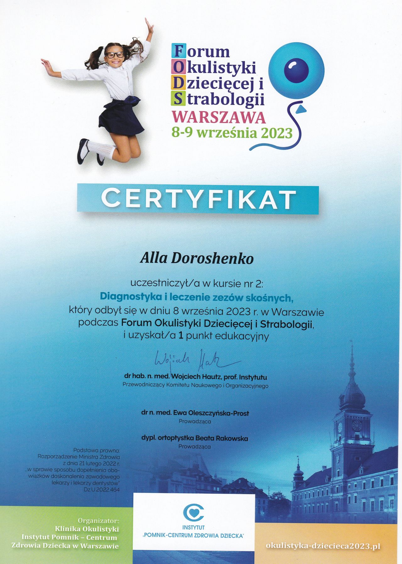 Skutecznie zajmuje się rechabilitacją narządu wzroku u dzieci i dorosłych stosując nie tylko tradycyjne metody pleoptyczne i ortoptyczne, a również innowacje z wykorzystaniem technologii biofeedback ba podstawie sztucznej inteligencji.