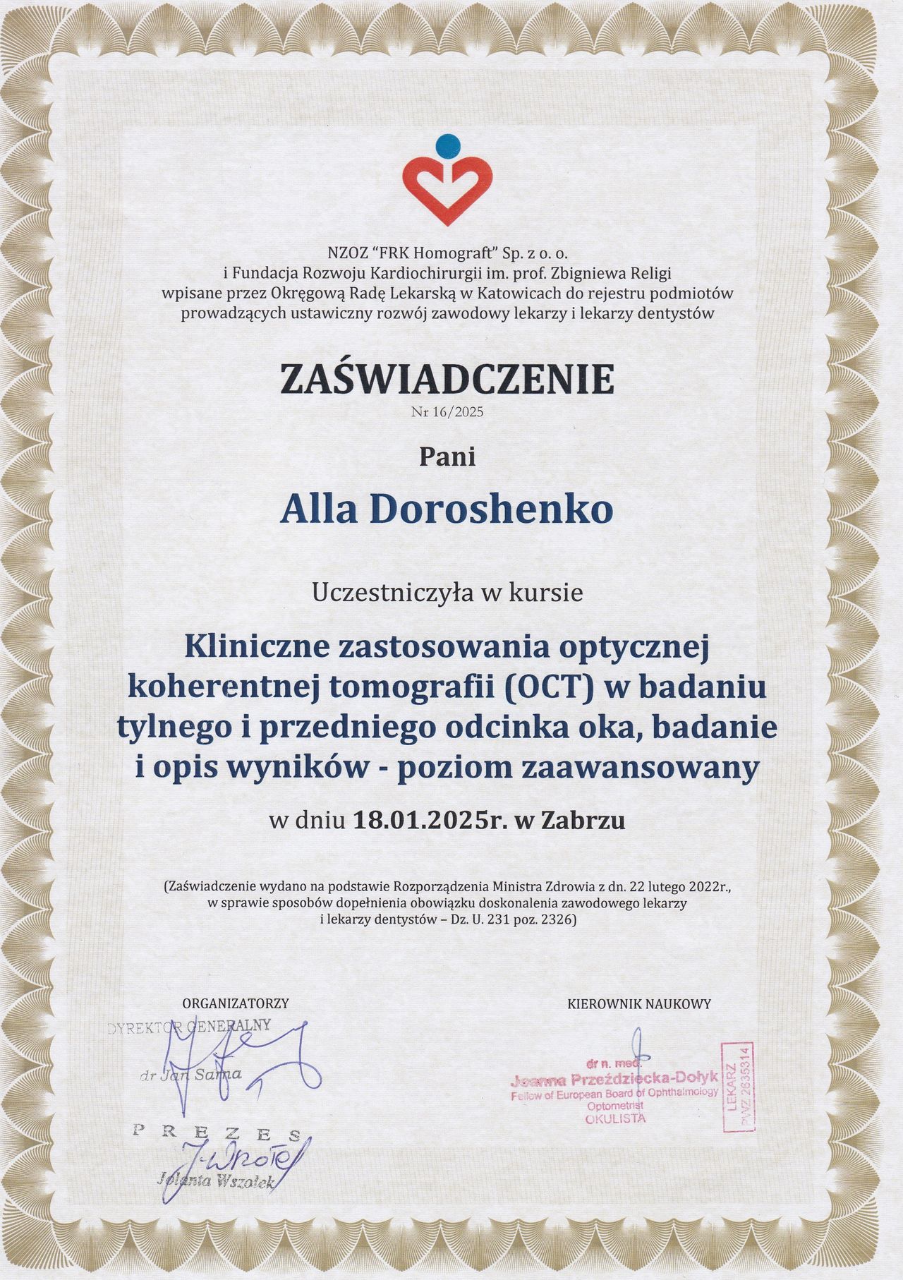 Jesteś już po wizycie u Alla Doroshenko? Daj znać, co myślisz. Inni pacjenci będą wdzięczni za pomoc w wyborze najlepszego specjalisty.
