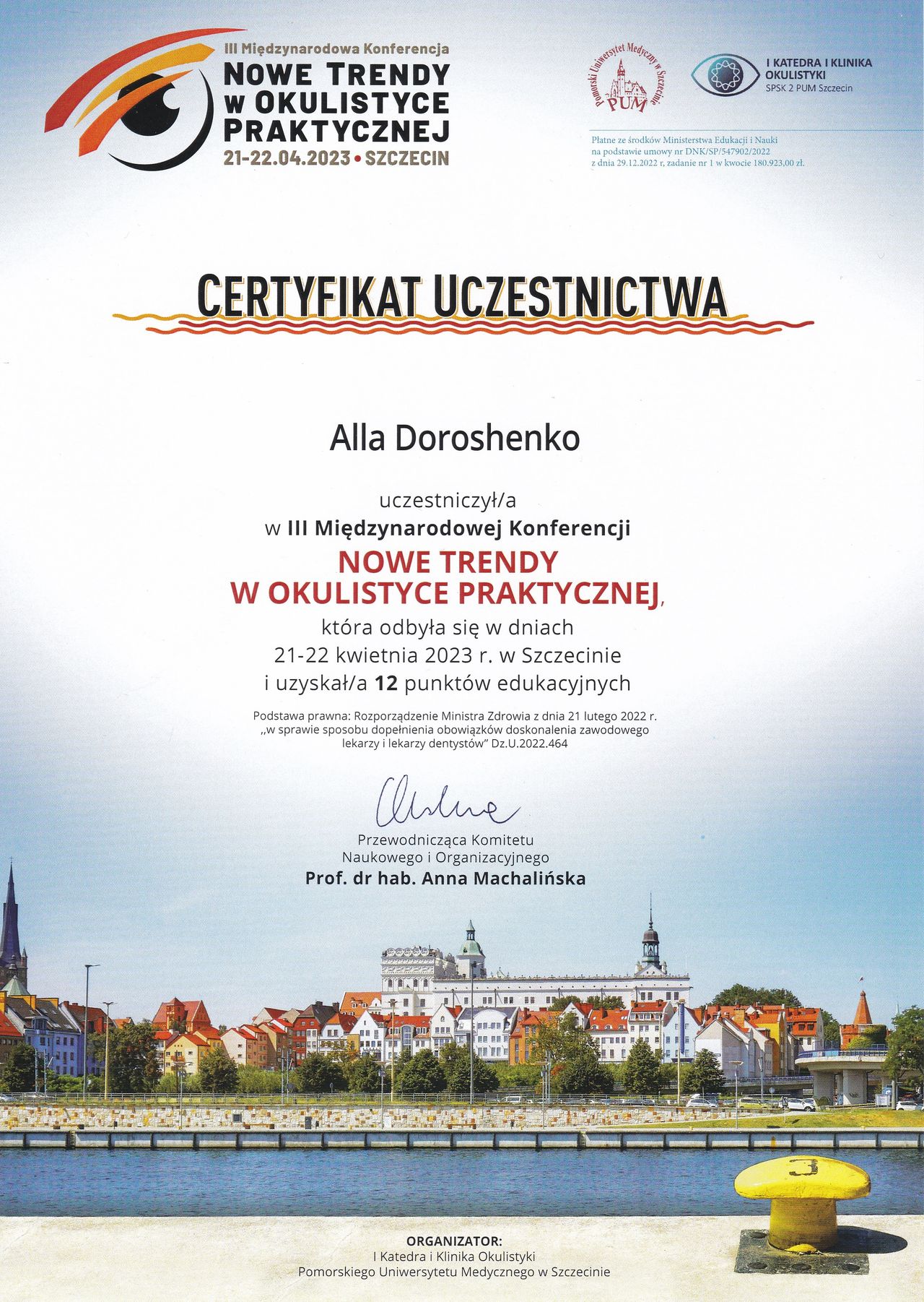 Jestem absolwentem Wyższej Szkoły Nauk o Zdrowiu w Bydgoszczy w kierunku "optometria".