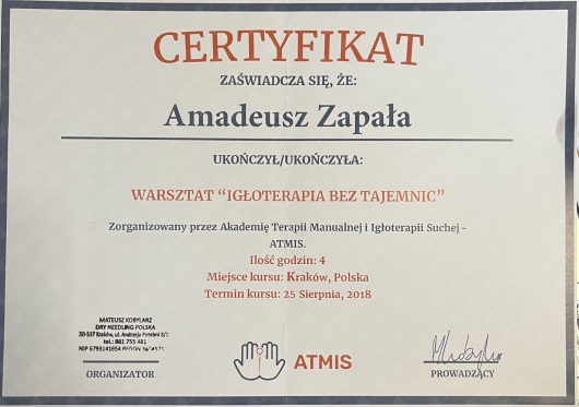 -Warsztat "Igłoterapia bez tajemnic" - Akademia Terapii Manualnej i Igłoterapii Suchej - ATMIS - 2018