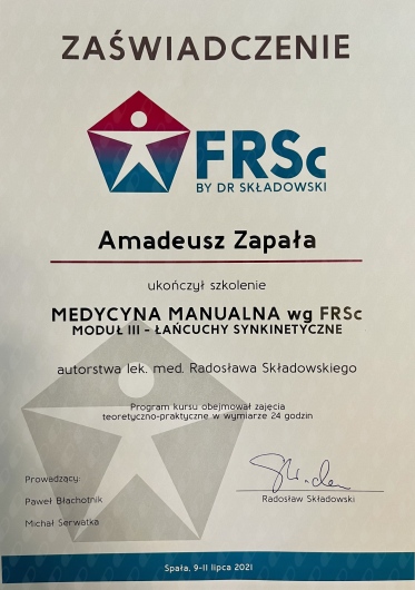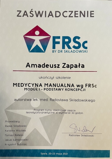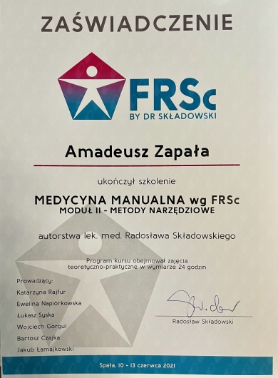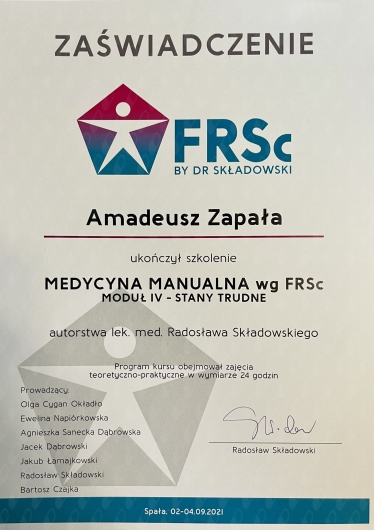 -Medycyna Manualna wg FRSc (Moduły 1, 2, 3, 4) - lek. med Radosław Składowski - 2021