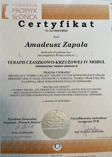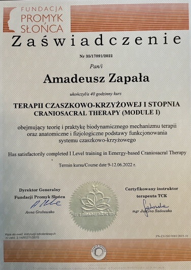 Dzięki terapii czaszkowo-krzyżowej u Amadeusza migreny zdarzają się dużo rzadziej i są mniej dokuczliwe. Do tego każda wizyta przebiega w spokojnej, przyjaznej atmosferze. Szczerze polecam!