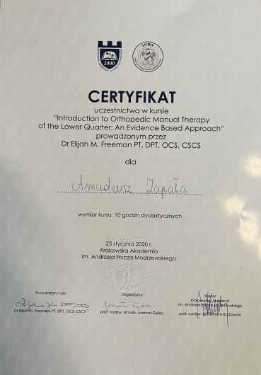 Jestem absolwentem Akademii Wychowania Fizycznego w Krakowie oraz Uniwersytetu Andrzeja Frycza Modrzewskiego w Krakowie na kierunku Fizjoterapia.