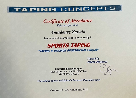 -Sports Taping "Taping w urazach sportowych i innych" - Chartered Physiotherapist - 2016